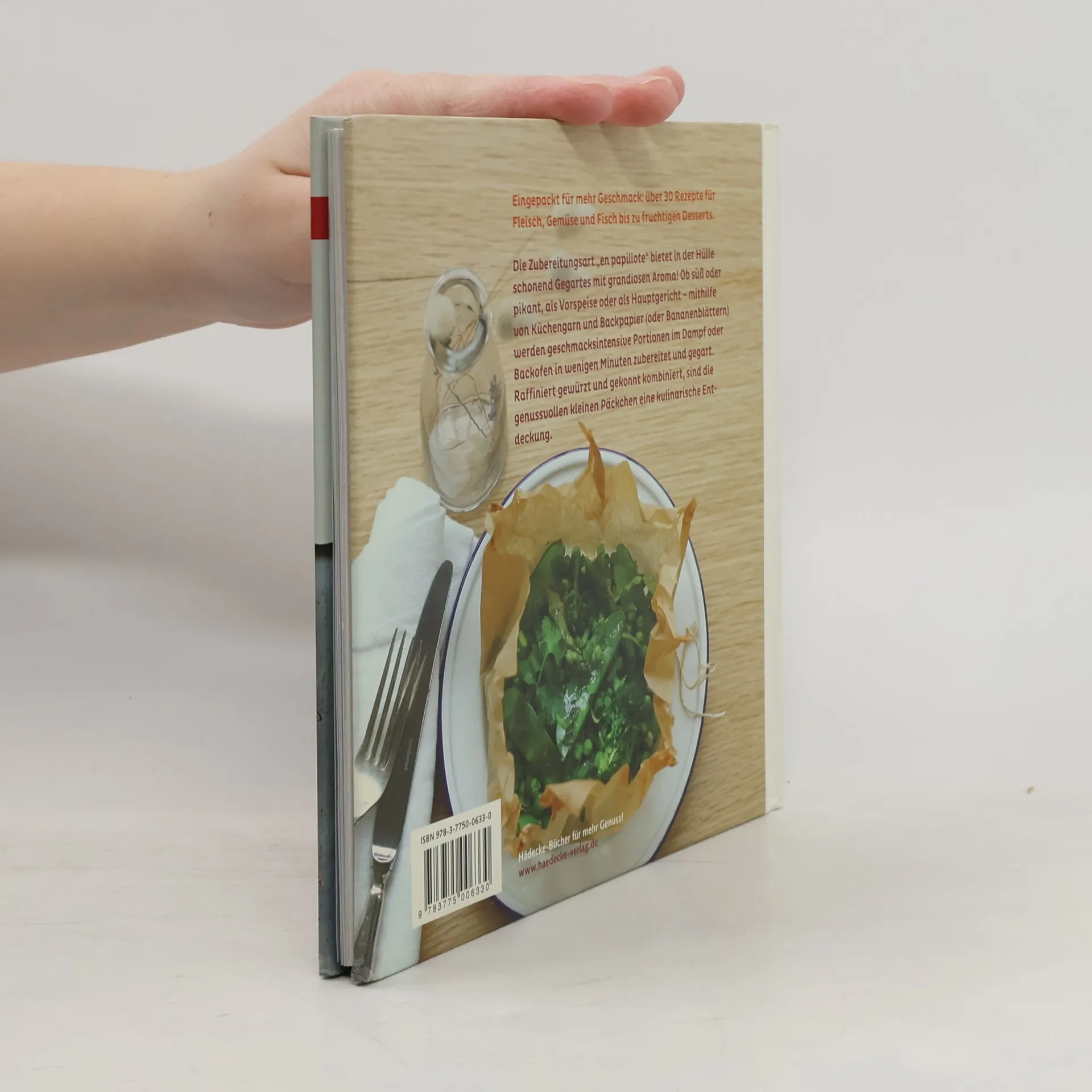 Eingepackt für mehr Geschmack! Was gastronomisch als Zubereitung „en papillote“ beschrieben und in der Sterneküche hoch geschätzt wird, verspricht schonend Gegartes mit grandiosem Aroma! Ob süß oder pikant, ob Fleisch, Fisch oder Gemüse, mit Hilfe von Küchengarn und Backpapier oder Bananenblättern werden geschmacksintensive Portionen im Dampf, Steamer oder Backofen in wenigen Minuten zubereitet und gegart. Raffiniert gewürzt und gekonnt kombiniert: Die genussvollen kleinen Päckchen sind eine kulinarische Entdeckung.