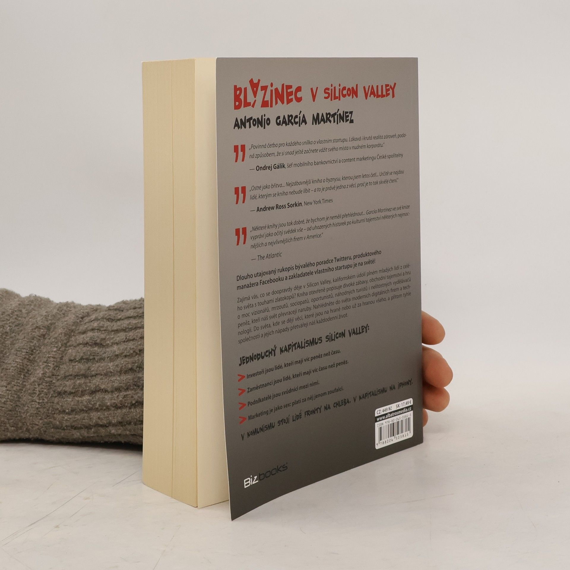 Rychlá auta, luxusní jachty, divoké večírky a... naše budoucnost. „Ostré jako břitva... Nejzábavnější kniha o byznysu, kterou jsem letos četl... Určitě se najdou lidé, kterým se kniha nebude líbit – a to je právě jedna z věcí, proč je to tak skvělé čtení.“ - Andrew Ross Sorkin, New York Times „Některé knihy jsou tak dobré, že bychom je neměli přehlédnout... García Martínez ve své knize vypráví jako očitý svědek vše – od uhozených historek po kulturní tajemství některých nejmocnějších a nejvlivnějších firem v Americe.“ - The Atlantic „Povinná četba pro každého snílka o vlastním startupu. Lákavá i krutá realita zároveň, podaná způsobem, že si snad ještě začnete vážit svého místa v nudném korporátu." – Ondřej Gálik, šéf mobilního bankovnictví a content marketingu České spořitelny Dlouho utajovaný rukopis bývalého poradce Twitteru, produktového manažera Facebooku a zakladatele vlastního startupu je na světě! Zajímá vás, co se doopravdy děje v Silicon Valley, kalifornském údolí plném mladých lidí s touhami zlatokopů? Kniha otevřeně popisuje divoké zábavy, obchodní tajemství a mocenské hry vizionářů, mrzoutů, sociopatů a oportunistů, kteří náš svět převracejí naruby. Nahlédněte do světa moderních digitálních firem a technologií, kde se dějí věci na hraně všeho a přetvářejí náš každodenní život.