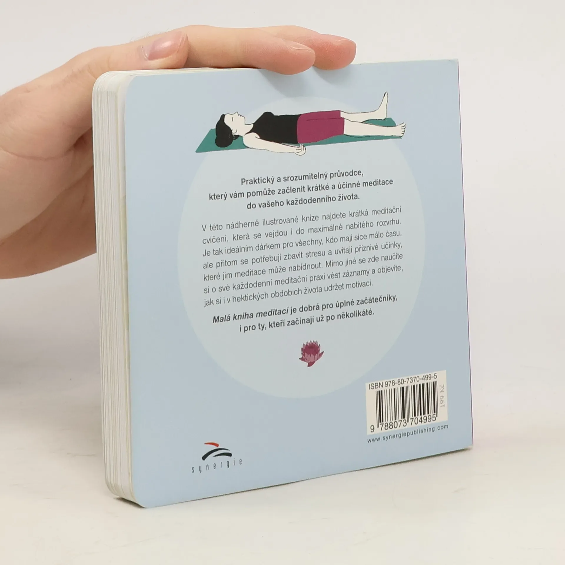 Praktický a srozumitelný průvodce, který vám pomůže začlenit krátké a účinné meditace do vašeho každodenního života. V této nádherně ilustrované knize najdete krátká meditační cvičení, která se vejdou i do maximálně nabitého rozvrhu. Je tak ideálním dárkem pro všechny, kdo mají sice málo času, ale přitom se potřebují zbavit stresu a uvítají příznivé účinky, které jim meditace může nabídnout. Mimo jiné se zde naučíte si o své každodenní meditační praxi vést záznamy a objevíte, jak si i v hektických obdobích života udržet motivaci. Malá kniha meditací je dobrá pro úplné začátečníky, i pro ty, kteří začínají už po několikáté.
