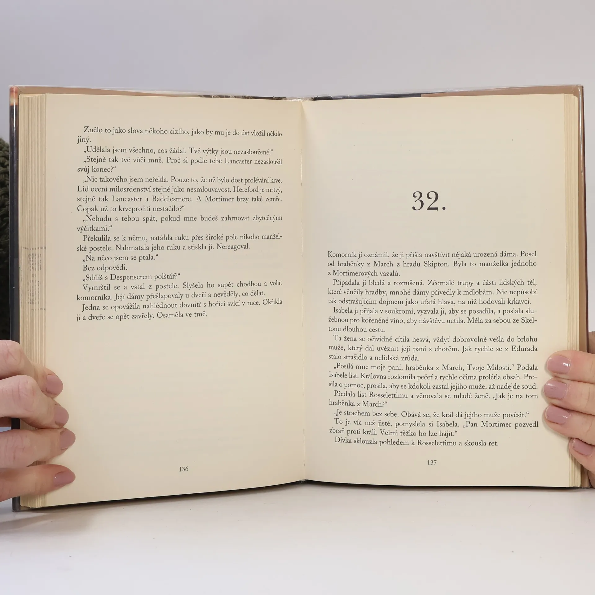 Zachránkyně trůnu. Isabele je pouhých dvanáct let, když je provdána za anglického krále Eduarda II. Pro francouzskou princeznu je to láska na první pohled, ale Eduardovo skrývané tajemství hrozí zničit nejen její lásku, ale i anglické království. Isabela musí volit mezi rodinou a zájmy říše. V sázku dává i vlastní život, aby zachránila království. Colin Falconer předkládá čtenářům další kritikou oceňovaných románů, jimž neschází ani čtivost, ani historická věrnost. Příběh královny Isabely vypráví osudy jediné ženy, která kdy zaútočila na Anglii a vyhrála. Tato historická událost, která i po staletích zůstává v Anglii tabu, změnila dějiny.
