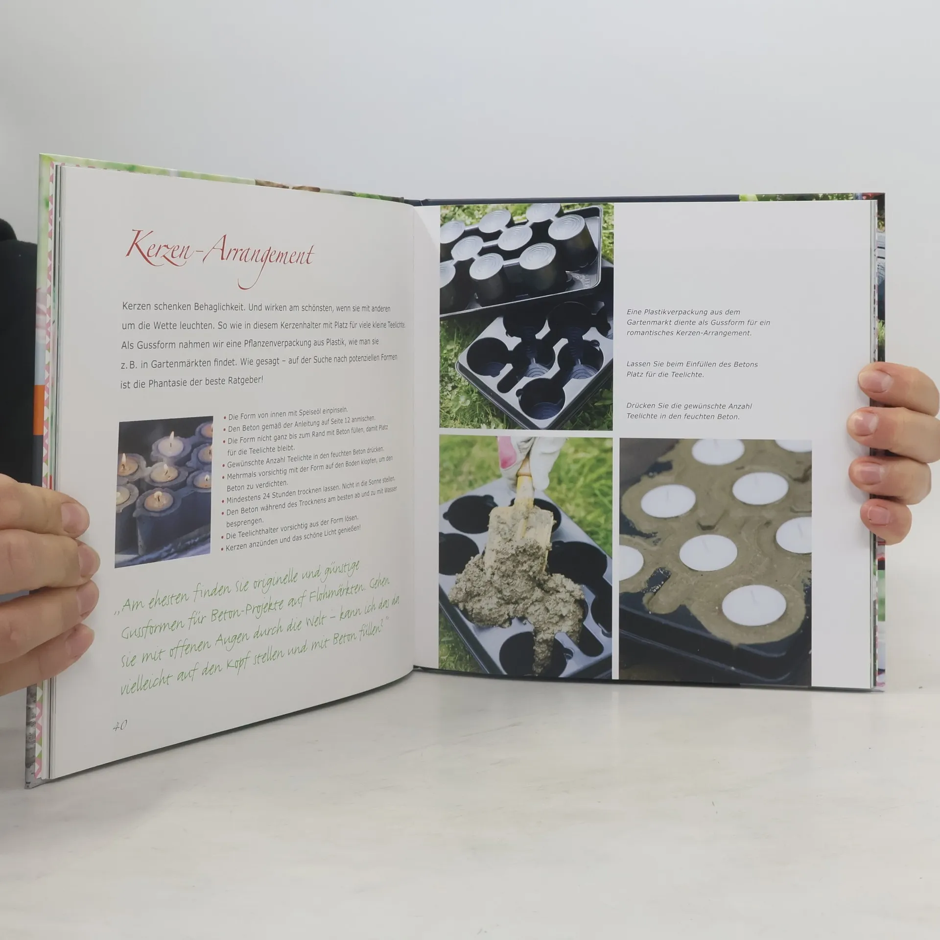 Nach dem großen Erfolg des Bestsellers „Garten-Deko aus Beton selbstgemacht“ erscheint ein weiterer Titel zum fröhlich-matschigen Kreativspaß! „Lust auf Beton“ der schwedischen Expertinnen Susanna Zacke und Sania Hedengren beinhaltet 27 tolle Ideen für draußen und drinnen und zeigt, wie vielfältig Beton einsetzbar ist. Kleine Projekte wie Kerzenhalter und Buchstützen sind schnell umgesetzt und finden überall ihren Platz. Ambitionierte Projekte wie ein besonderer Spiegel oder ein praktischer Grilltisch brauchen mehr Zeit, aber auch nur einfache Utensilien wie Holzrahmen und Nägel und sind dann leicht umsetzbar.