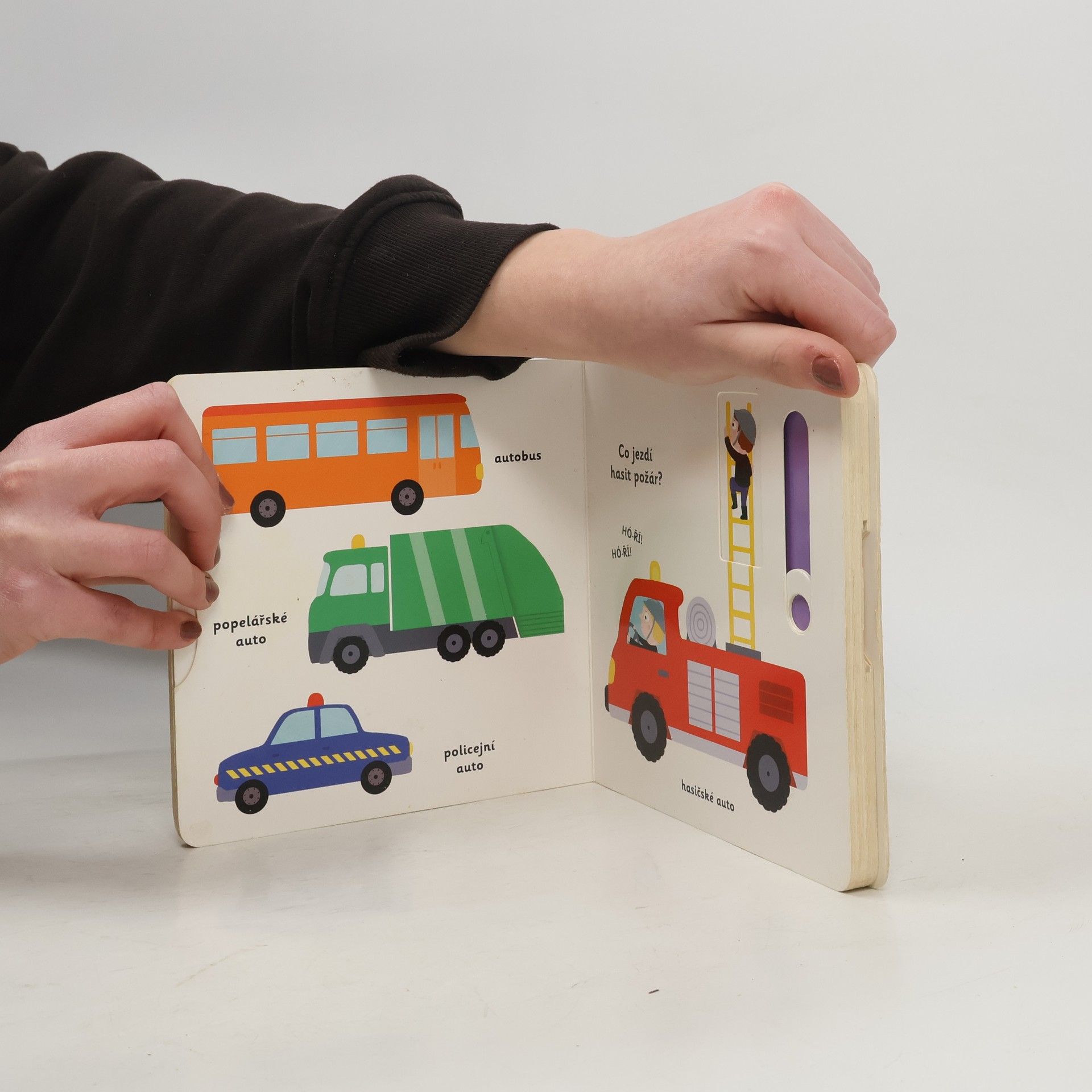 Objevovat svět vozidel a dopravních prostředků s tímto leporelem je tak zábavné! Tú, tú, copak to přijíždí a troubí? Co jezdí hasit požáry? Jaký stroj přenáší na staveništi těžké náklady? Co létá pomocí vrtule? Stačí jen vložit prstík do správného otvoru a lehce vysunout, zatáhnout nebo otočit ve směru šipky a hned bude váš malý objevitel znát odpovědi. Leporelo je určeno pro nejmenší děti od jednoho roku a má pevné stránky s posuvnými a otočnými prvky, a tak si naši nejmenší mohou při prohlížení a rozeznávání různých druhů vozidel a dopravních prostředků procvičit i jemnou motoriku.