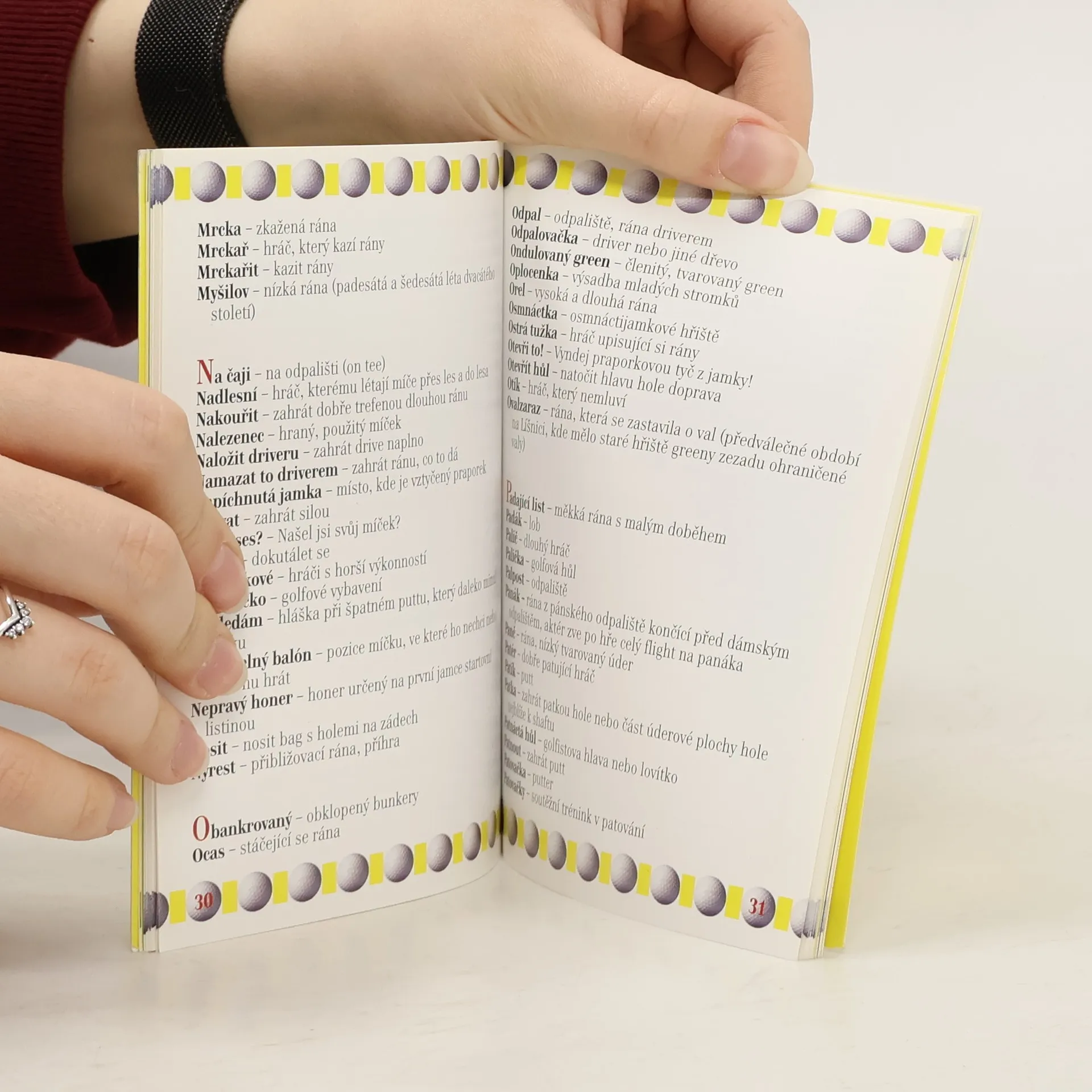 Zorientujte se v golfové (nejen oficiální) terminologii. Český slangový golfový slovník obsahuje více než 800 všedních i nevšedních golfových výrazů ze všech koutů republiky, doplněných vtipnou grafikou a oficiálním golfovým slovníkem.