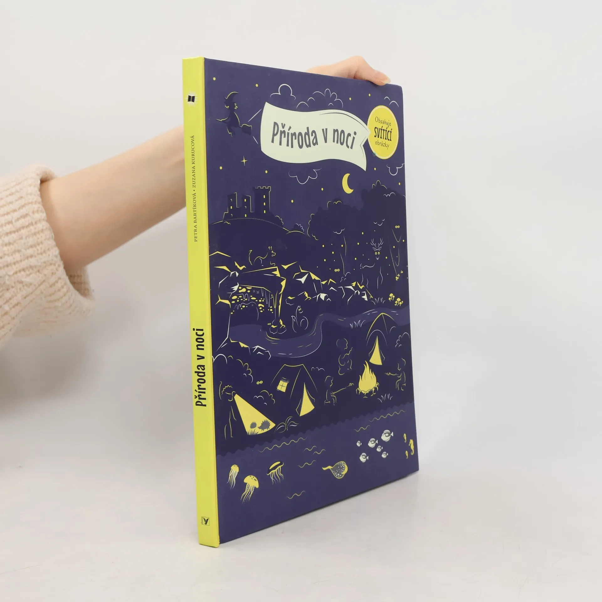 Představ si tmu a v ní jen dvě oči. Kdo se to dívá? Kočka, nebo strašidlo? Světlo, které vydávají různí tvorové v přírodě, fascinuje lidstvo odpradávna. Vůbec nejradši bychom si na ně posvítili – abychom měli ve všem jasno. V této knize zjistíš, co svítí v lese, na nebi i pod vodou nebo jak vypadá planeta Země v noci. Až dočteš, polož otevřenou knihu přímo pod lampičku. Počkej pár minut a pak zhasni. Cvak! Nasvícená ilustrace se rozzáří ve tmě do všech stran!