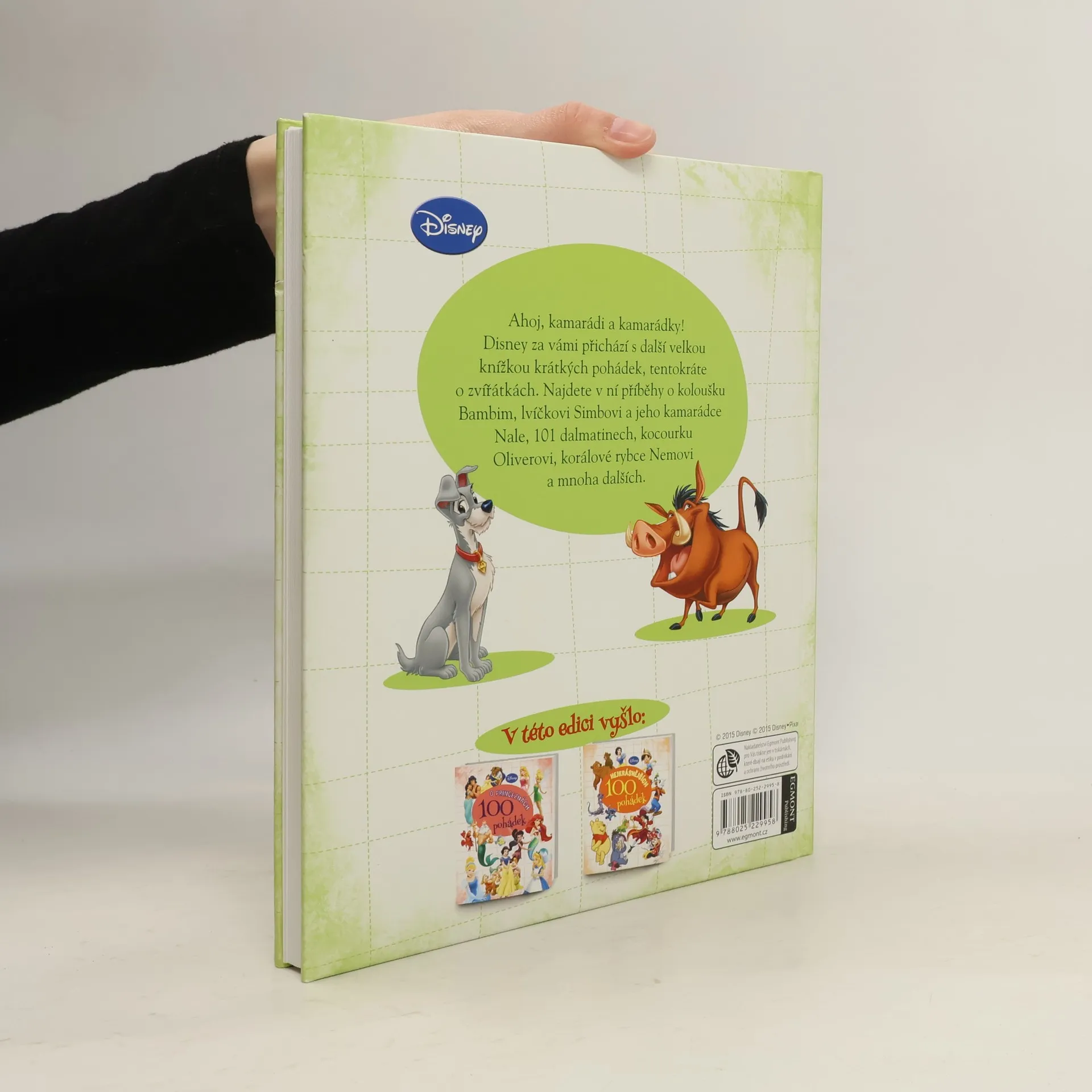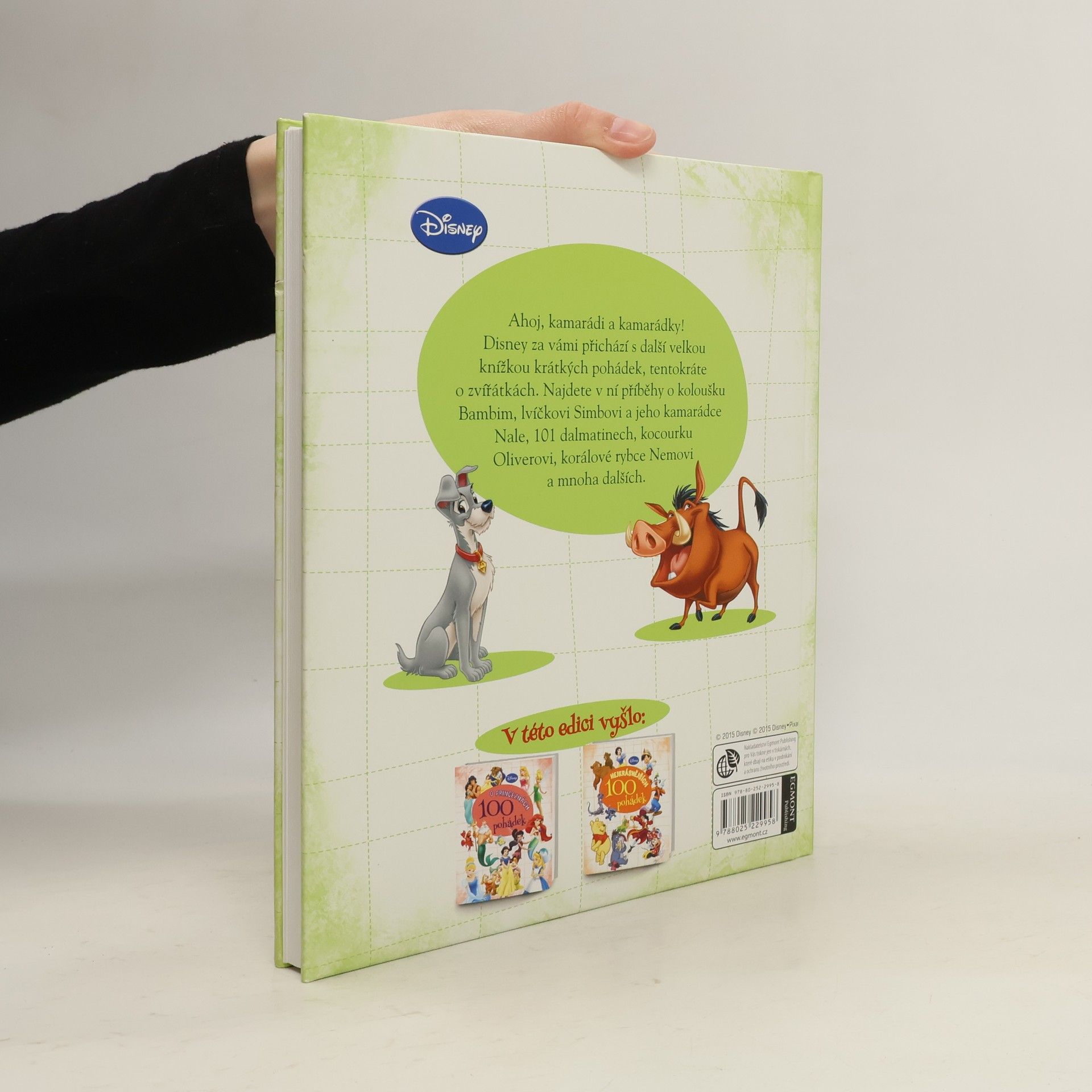 Milé děti, Disney za vámi přichází s další velkou knížkou krátkých pohádek, tentokráte o zvířátkách. Najdete v ní příběhy o koloušku Bambim, lvíčkovi Simbovi a jeho kamarádce Nale, 101 dalmatinech, kocourku Oliverovi, korálové rybce Nemovi a mnoha dalších.