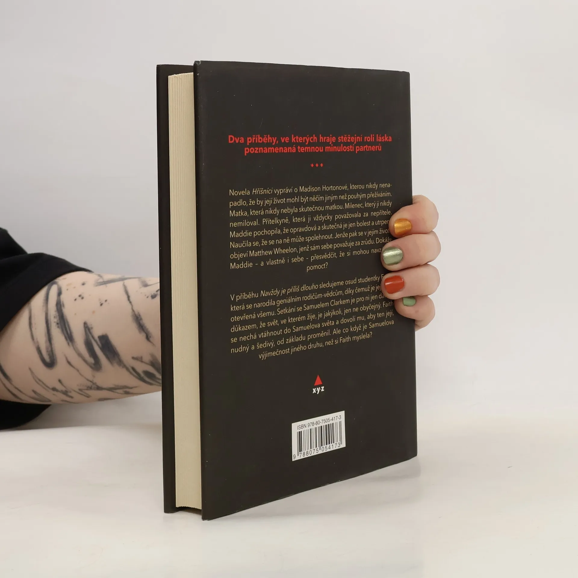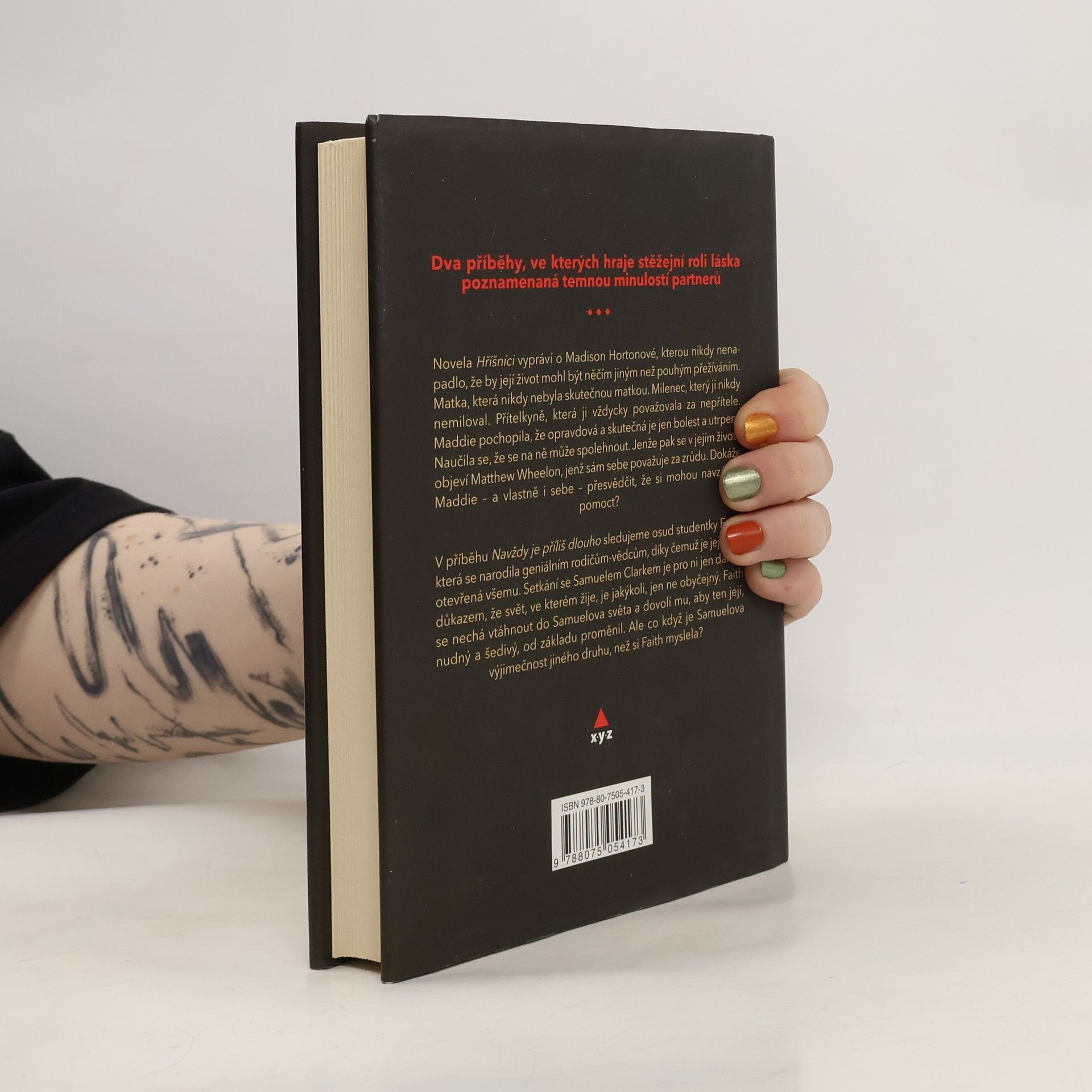Dvě novely o lásce a touze. Hříšníci - Madison Hortonovou nikdy nenapadlo, že by její život mohl být něčím jiným než pouhým přežíváním. Matka, která nikdy nebyla skutečnou matkou. Milenec, který ji nikdy nemiloval. Přítelkyně, která ji vždycky považovala za nepřítele. Maddie pochopila, že opravdové a skutečné jsou jen bolest a utrpení. Naučila se, že se na ně může spolehnout. Matthew Wheelon sám sebe považuje za zrůdu. Biologickou anomálii, která nemá právo od nikoho očekávat lásku nebo přátelství. Děsí ho, když se mu někdo snaží namluvit opak. Jenže pak se v jeho životě objeví Madison. Jak by právě on mohl tu ztracenou holku přesvědčit, že život nemusí být jenom podělaná mizérie? Připustí aspoň jednou, kvůli ní, že za hřích, ze kterého se narodil, by měli zaplatit jiní? Dokáže Maddie – a vlastně i sebe – přesvědčit, že se mohou navzájem zachránit? Navždy je příliš dlouho - Faith Fosterová je dítě geniálních rodičů. Díky tomu je její mysl otevřená všem možnostem. Setkání se Samuelem Clarkem je pro ni jen dalším důkazem, že svět, ve kterém žijeme, je všechno, jen ne obyčejný. Faith se nechá vtáhnout do Samuelova světa. Dovolí, aby ten její, nudný a šedivý, od základu proměnil. Ale co když je Samuelova výjimečnost jiného druhu, než si Faith myslela? Bude její víra v zázraky stačit k tomu, aby ji Samuel miloval i v jejím lidském, obyčejném světě?