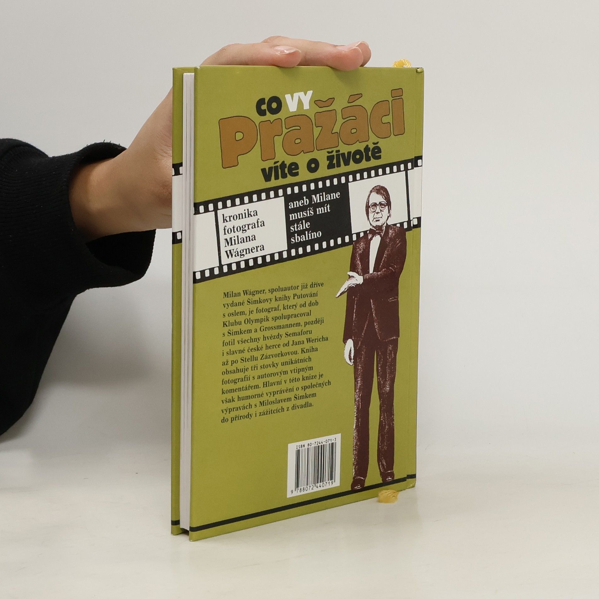 Milan Wágner, spoluautor již dříve vydané Šimkovy knihy Putování s oslem, je fotograf, který od dob Klubu Olympik spolupracoval s Šimkem a Grossmannem, později fotil všechny hvězdy Semaforu i slavné české herce od Jana Wericha až po Stellu Zázvorkovou. Kniha obsahuje tři stovky unikátních fotografií s autorovým vtipným komentářem. Hlavní v této knize je však humorné vyprávění o společných výpravách s Miloslavem Šimkem do přírody i zážitcích z divadla.