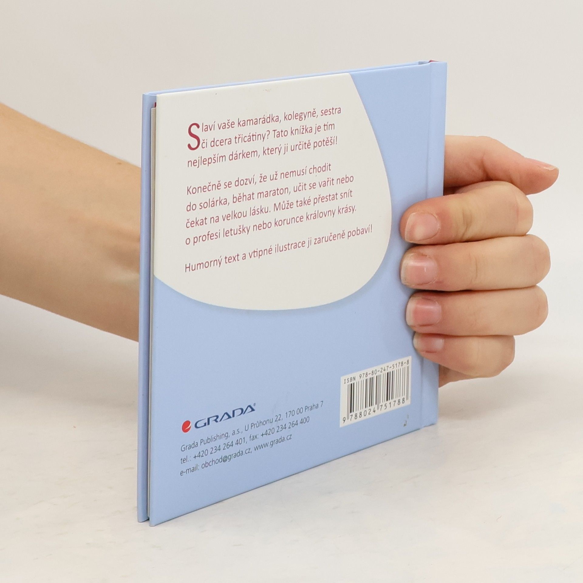 Slaví vaše kamarádka, kolegyně, sestra či dcera třicátiny? Tato knížka je tím nejlepším dárkem, který ji určitě potěší. Konečně se dozví, že už nemusí chodit do solárka, běhat maraton, učit se vařit nebo čekat na velkou lásku. Může také přestat snít o profesi letušky nebo korunce královny krásy. Humorný text a vtipné ilustrace ji zaručeně pobaví!