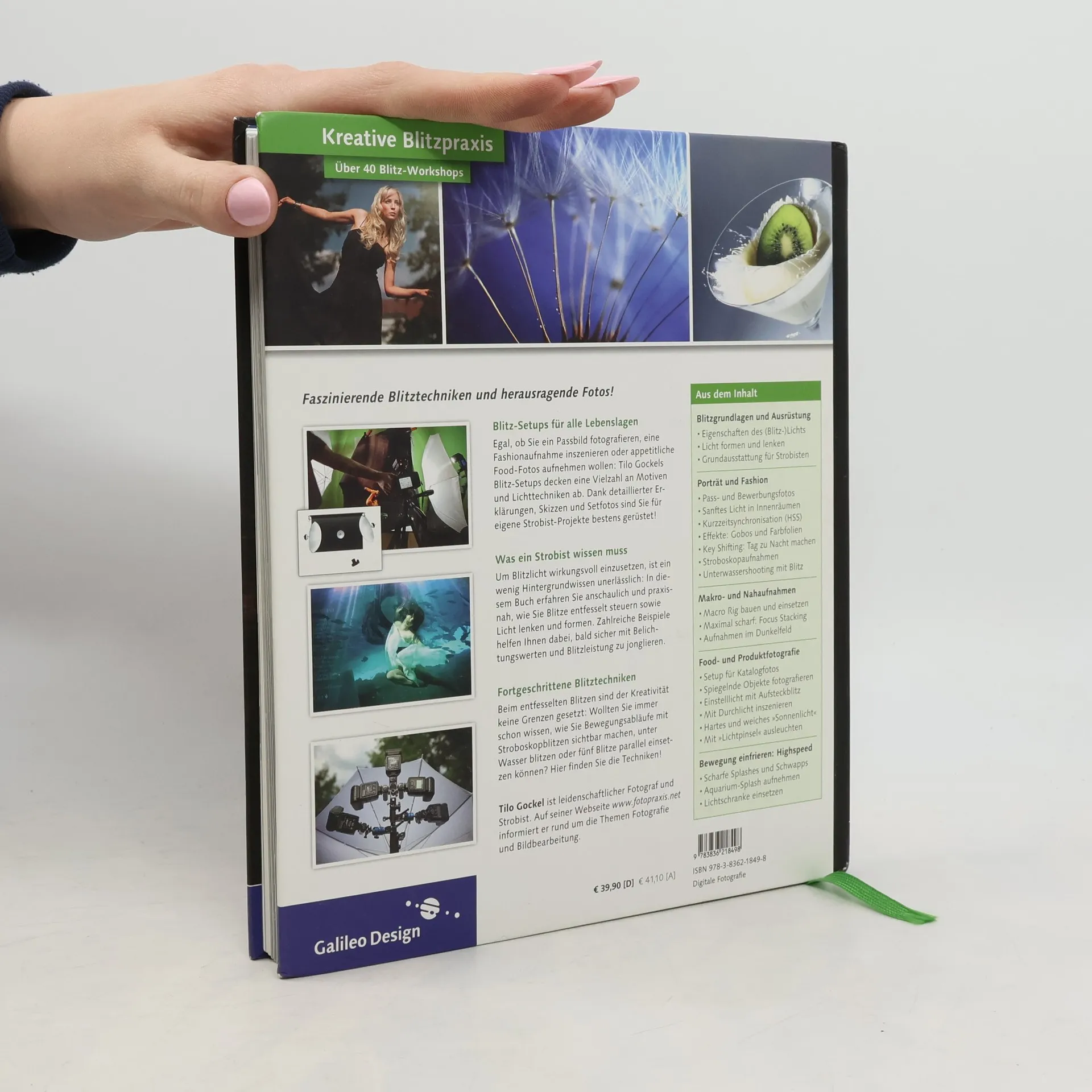 »Große Wirkung mit kleinen Blitzen« – das ist das Motto dieses Buchs! Tilo Gockel verrät Ihnen, wie Sie die unterschiedlichsten Motive mit Systemblitzen perfekt ausleuchten. Lernen Sie seine Rezepte für beeindruckende Blitzfotos in den Bereichen Porträt, Fashion, Makro, Food, Stilllife und Highspeed kennen. Making-of-Fotos der Blitzaufbauten, detaillierte Lichtskizzen sowie Angaben zu allen Einstellungen helfen Ihnen dabei, auch komplexere Setups schnell nachzuvollziehen. Ein Grundlagenkapitel und der Infoteil im Anhang machen Sie fit für den Umgang mit Blitzen und Lichtformern. Tilo Gockel hat außerdem viele Tipps und Anleitungen für kostengünstiges Zubehör im Selbstbau zusammengetragen. So lernen Sie mit Licht zu zaubern! Inklusive Vorwort von STROBIST David Hobby. Aus dem Inhalt: Entfesseltes Blitzen – die Grundlagen Blitz frei! Porträt- und Fashionshots Blitzen wie gemalt: Stilllife-, Tabletop und Produktshots Wichtigste Zutat Licht: Food-Fotos Das Unsichtbare zeigen: Highspeed-Blitzen Blitzen minimal: Nah- und Makroaufnahmen Nützliches zum Nachschlagen: Anhang