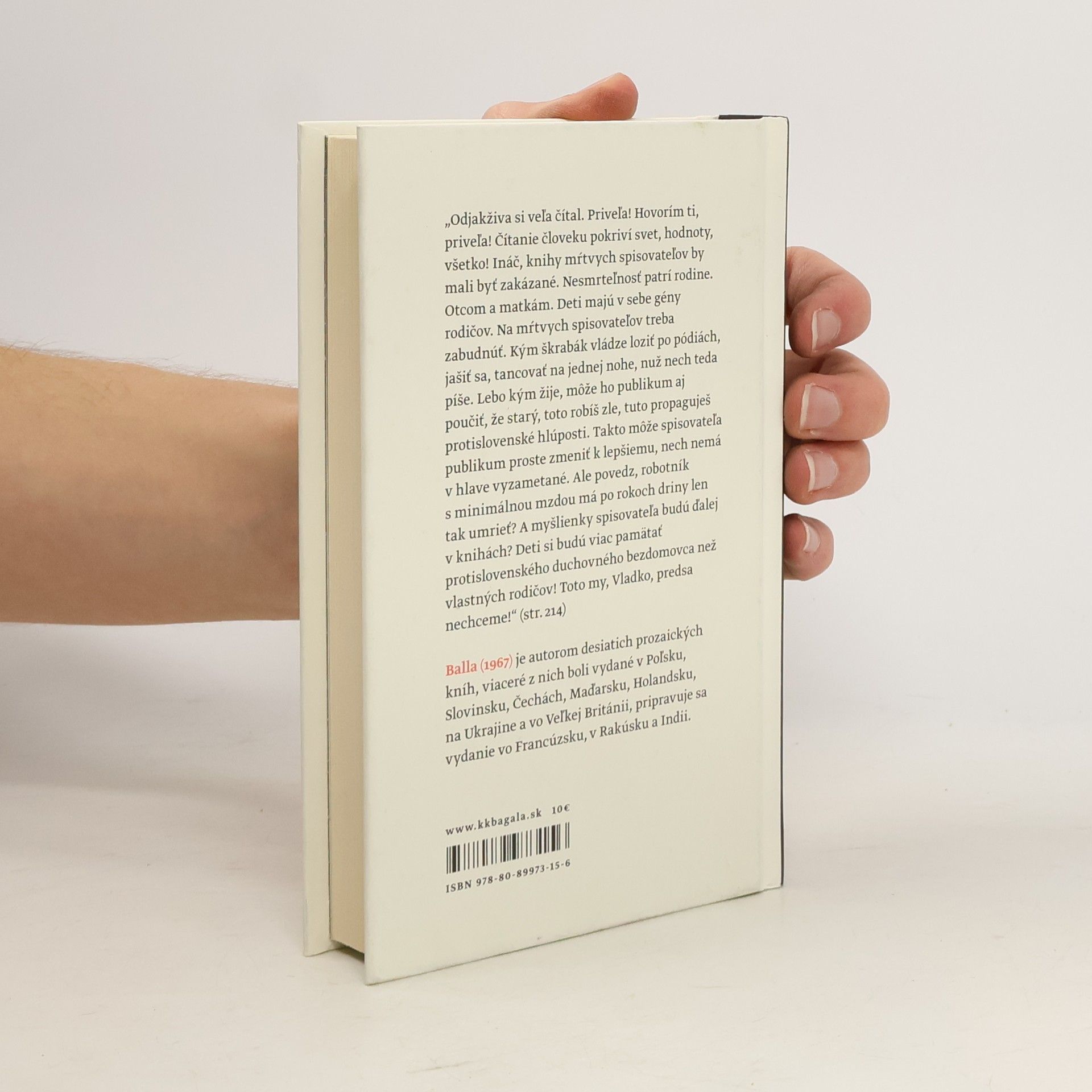Postavy bizarných príbehov navonok azda pôsobia ako kruté, nenávistné indivíduá, ich konanie však v konečnom dôsledku prezrádza túžbu intenzívne, poctivo žiť a odolávať banalite každodenného sveta. Jedna z postáv Ballovej knižky hovorí: „Dobrý aforizmus je viac ako zlý román“. Možno preto autor po úspešnej odbočke k relatívne dlhším prózam (V mene otca, Veľká láska) znovu prichádza s textami krátkymi a ešte kratšími. Hoci to nie sú aforizmy, vypointovanosťou hádam každej vety od nich ďaleko nemajú. Vo zvláštnych, neraz šokujúcich príbehoch či skôr antipríbehoch tu v pôsobivo lapidárnej skratke zaznievajú autentické i cielene zremixované hlasy bežných našincov, ich filozofia aj pseudofilozofia. Provokatívny názov knihy síce naznačuje opak, ale Balla rozhodne nie je mŕtvy – počúva nás totiž až príliš pozorne.