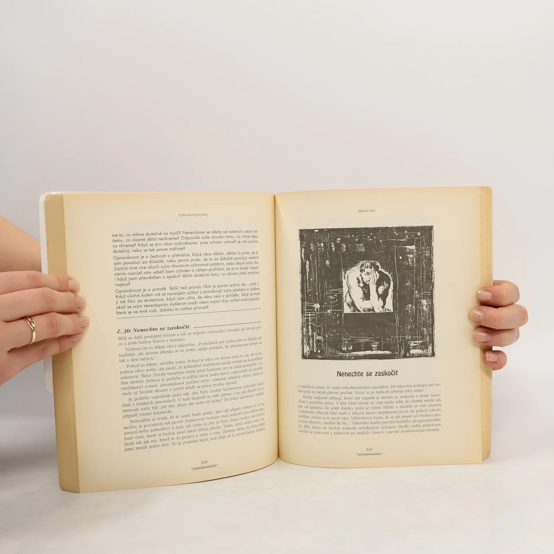 Programátorský tým hraje klíčovou roli v úspěšnosti produktu. Jim McCarthy, se svými zkušenostmi z Microsoftu a vlastní softwarové firmy, shromáždil empirická pravidla, která osvětlí složitosti vývoje softwaru v týmovém prostředí. Dodržování termínů v tomto odvětví je náročné, ale s kompetentními lidmi je to snazší. McCarthy ukazuje, že programování není jen o psaní kódu, ale především o řešení problémů, a učí, jak je identifikovat a efektivně řešit. Kniha je rozdělena do čtyř částí: 1. Zahájení – zaměření na organizaci týmu, analýzu konkurence, marketingovou strategii založenou na potřebách zákazníků a cílení na kvalitu. 2. Mezihra – vyvažování funkcí, zdrojů a času, stanovování milníků a zvládání sklouznutí bez pádu. 3. Koncovka – důraz na naléhavost, třídění chyb a stabilizaci produktu. 4. Uvedení na trh – vytváření a komunikace efektivního marketingového sdělení. V dodatku autor radí, jak vybírat správné členy týmu a upozorňuje na běžné chyby manažerů při výběru a vedení pracovníků. Kniha je psána živým a vtipným stylem, slibuje nejen poučení, ale i zábavné čtení.