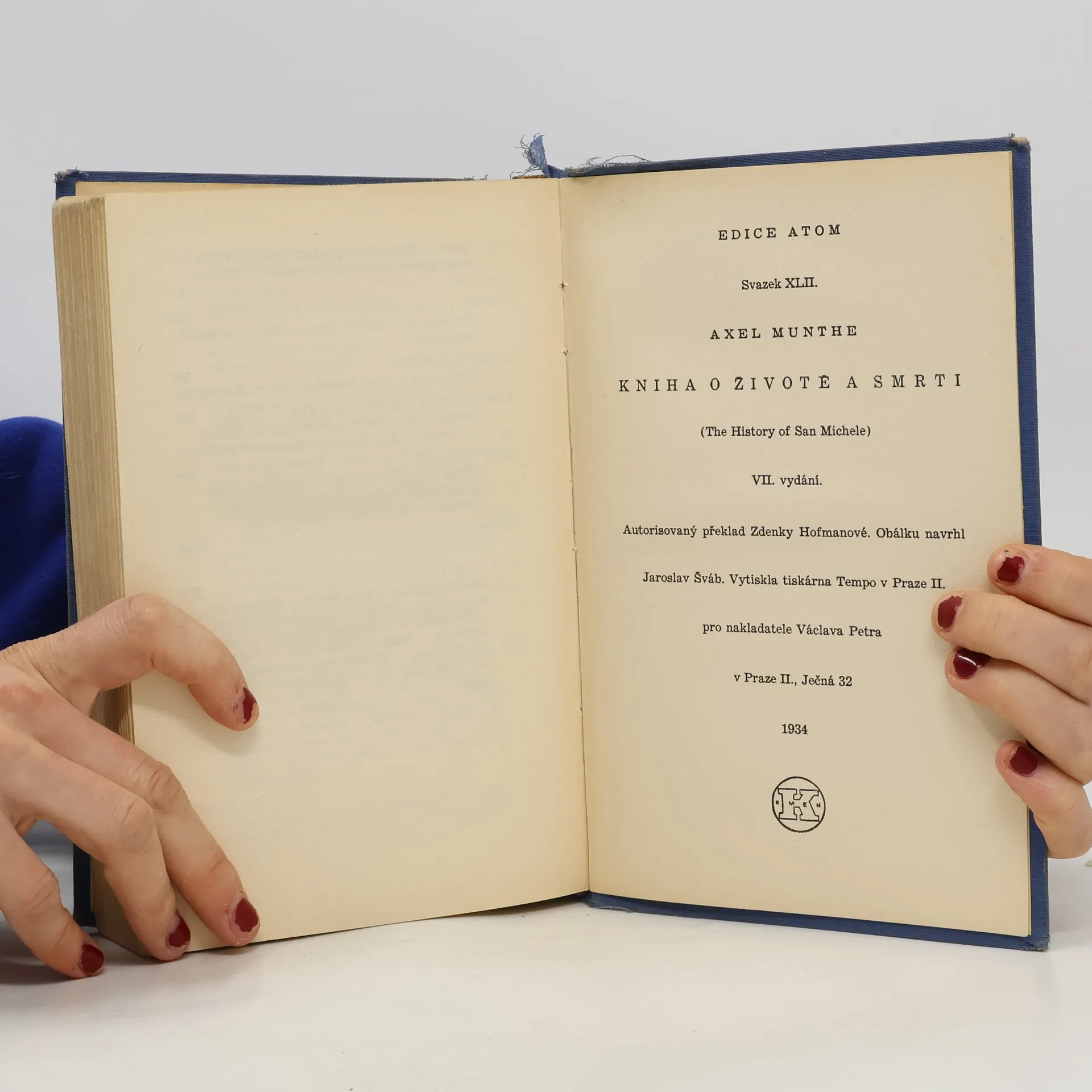 Kniha o životě a smrti, Axel Munthe, Zdenka Hofmanová