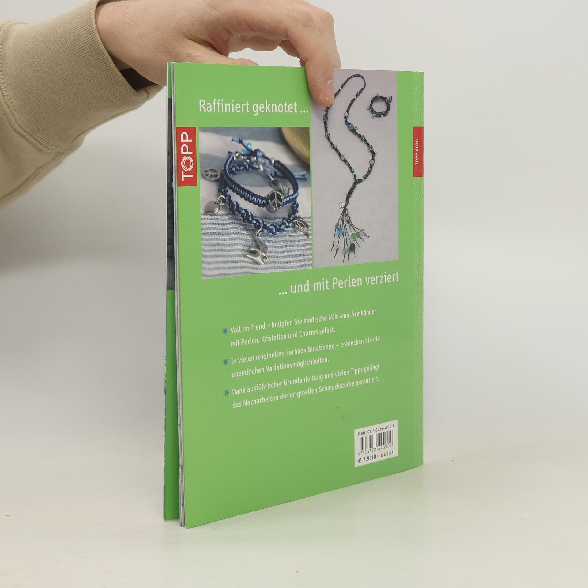 Mikrama-Bänder selbst geknüpft. Schmuckstücke fürs Handgelenk. Der Fashion-Trend: Geknüpfte Armbänder mit und ohne Perlen. Makramee-Knoten neu entdeckt – von einfach bis raffiniert. Mit ausführlicher Grundanleitung und anschaulichen Illustrationen. Kreativ-Softcover, 32 Seiten, 17 x 22 cm, Umschlagklappen.