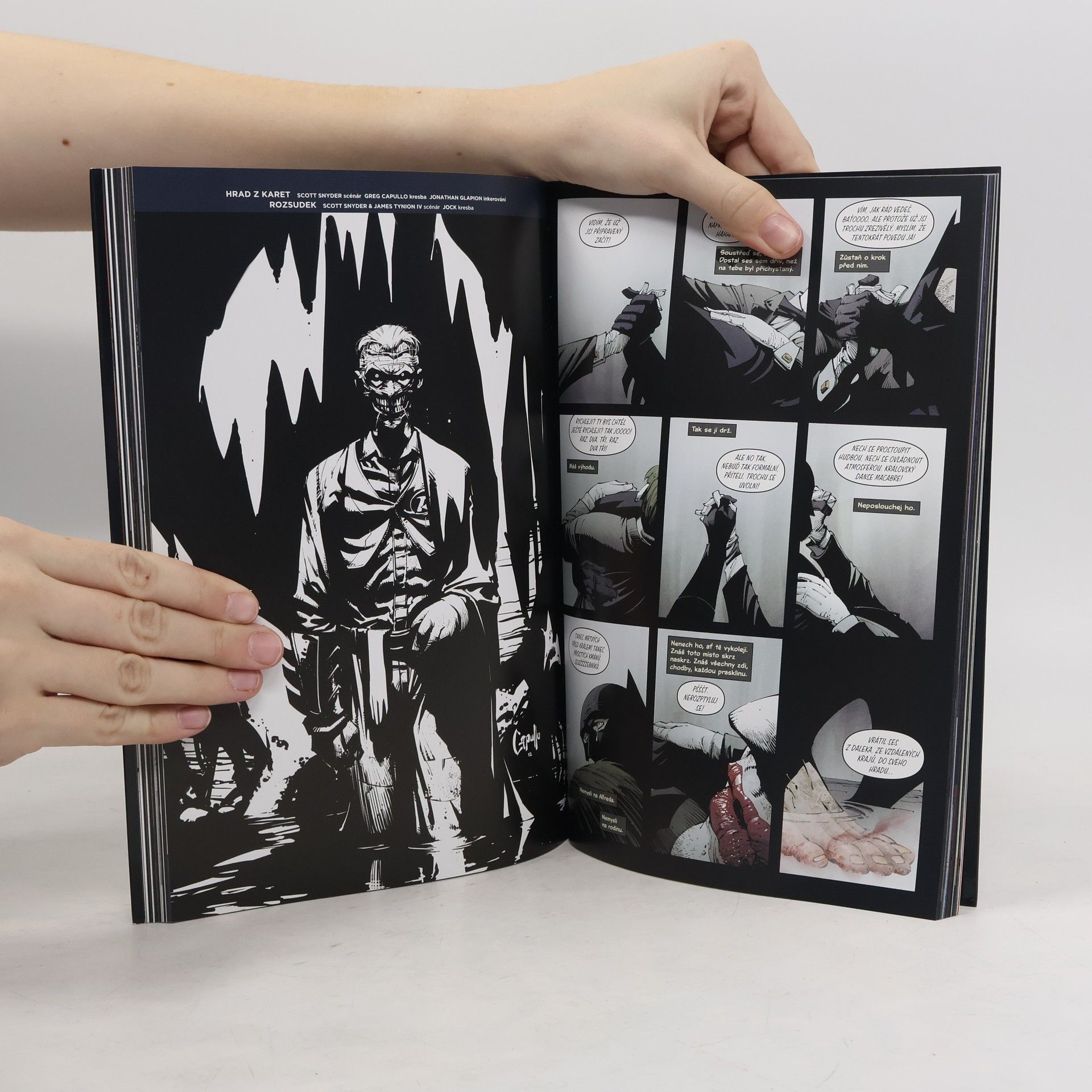 Joker je zpátky. S jeho obličejem sice není všechno v pořádku, ale úsměv má na něm stále jako přišitý a hlavu má plnou nápadů, jak zničit Batmana. Tentokrát to hodlá vzít opravdu důkladně. Nestačí mu zničit temného rytíře. Chce zabít všechny. Zvládne Batman zachránit město a především všechny své blízké? Už třetí kniha z opěvované série Scotta Snydera a Grega Capulla. Pokud jste si mysleli, že nemůže být nic větší nářez než Soví tribunál a Soví město, tak vás tenhle komiks vyvede z omylu