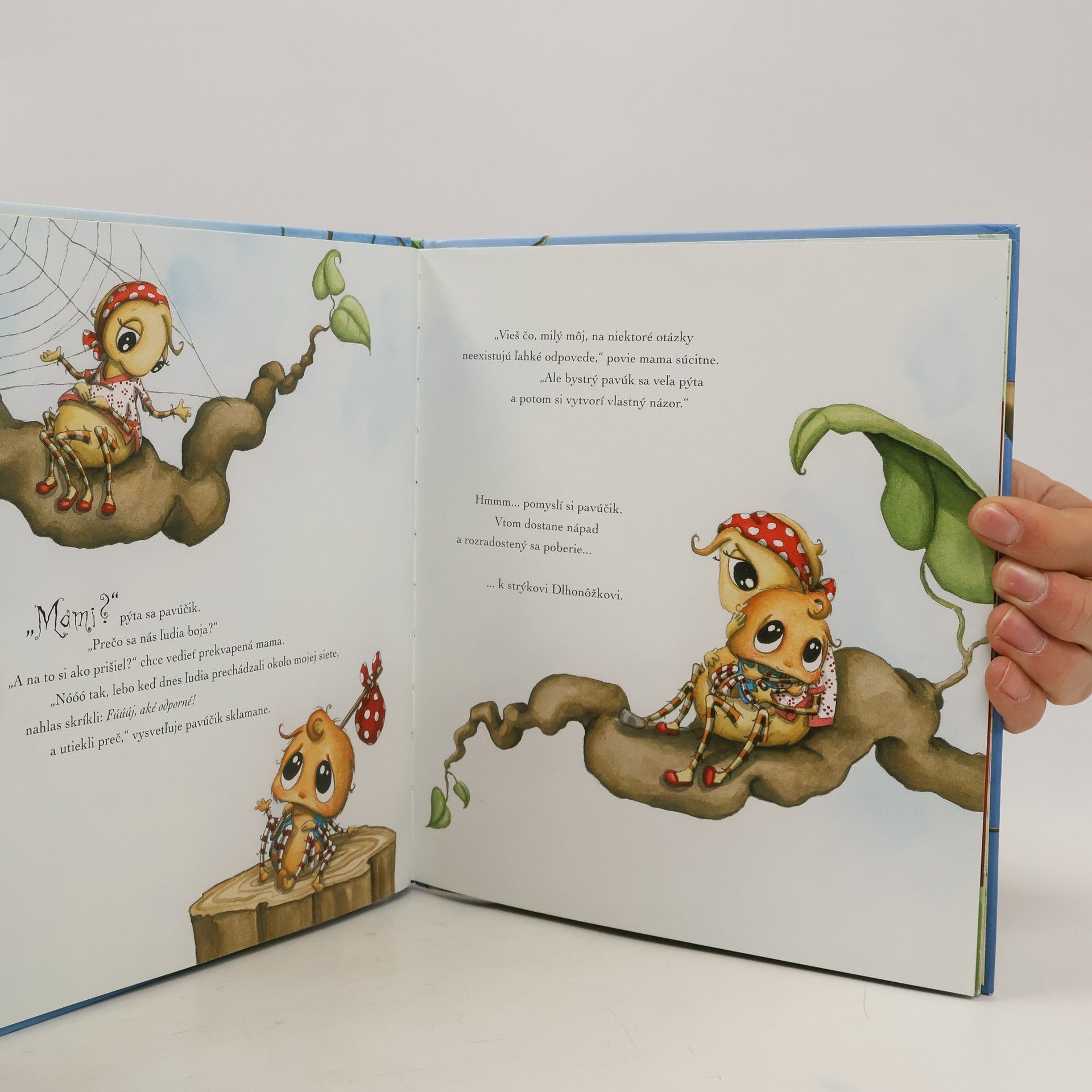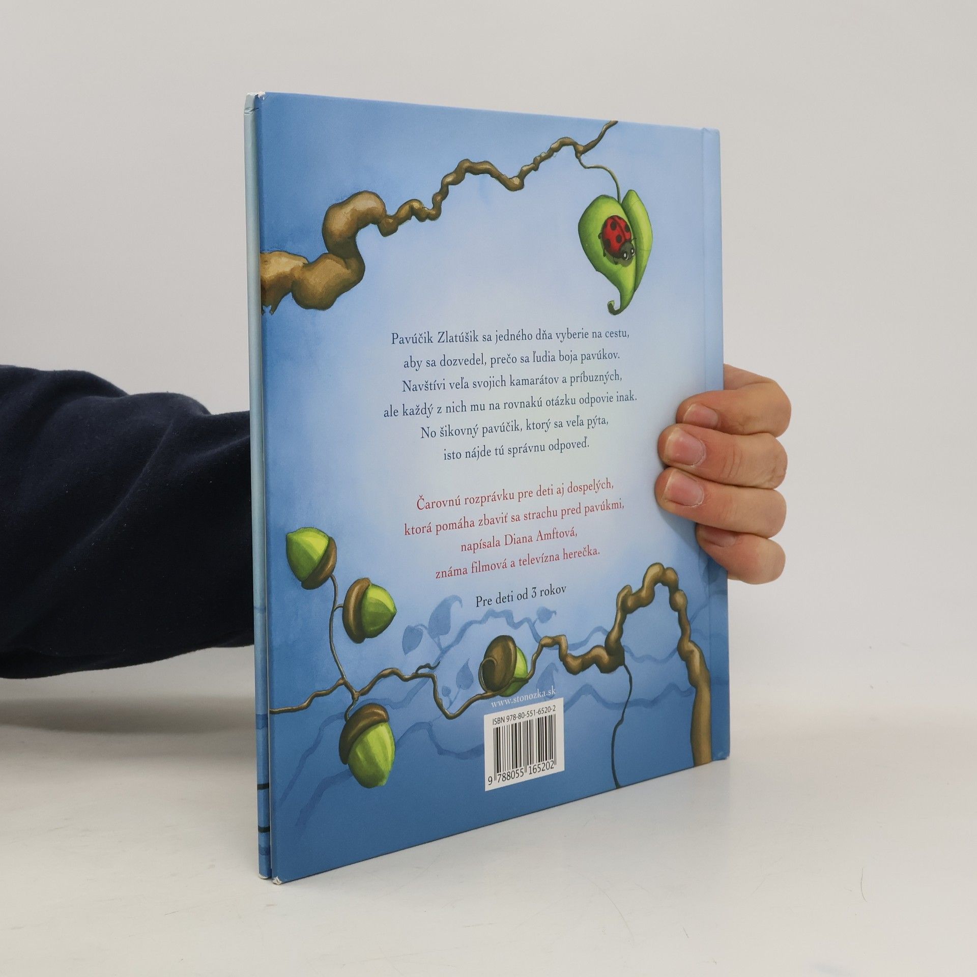 Pavúčik Zlatúšik sa jedného dňa vyberie na cestu, aby sa dozvedel, prečo sa ľudia boja pavúkov. Navštívi veľa svojich kamarátov a príbuzných, ale každý z nich mu na rovnakú otázku odpovie inak. No šikovný pavúčik, ktorý sa veľa pýta, isto nájde tú správnu odpoveď. Čarovnú rozprávku pre deti aj dospelých, ktorá pomáha zbaviť sa strachu pred pavúkmi, napísala Diana Amftová, známa filmová a televízna herečka.