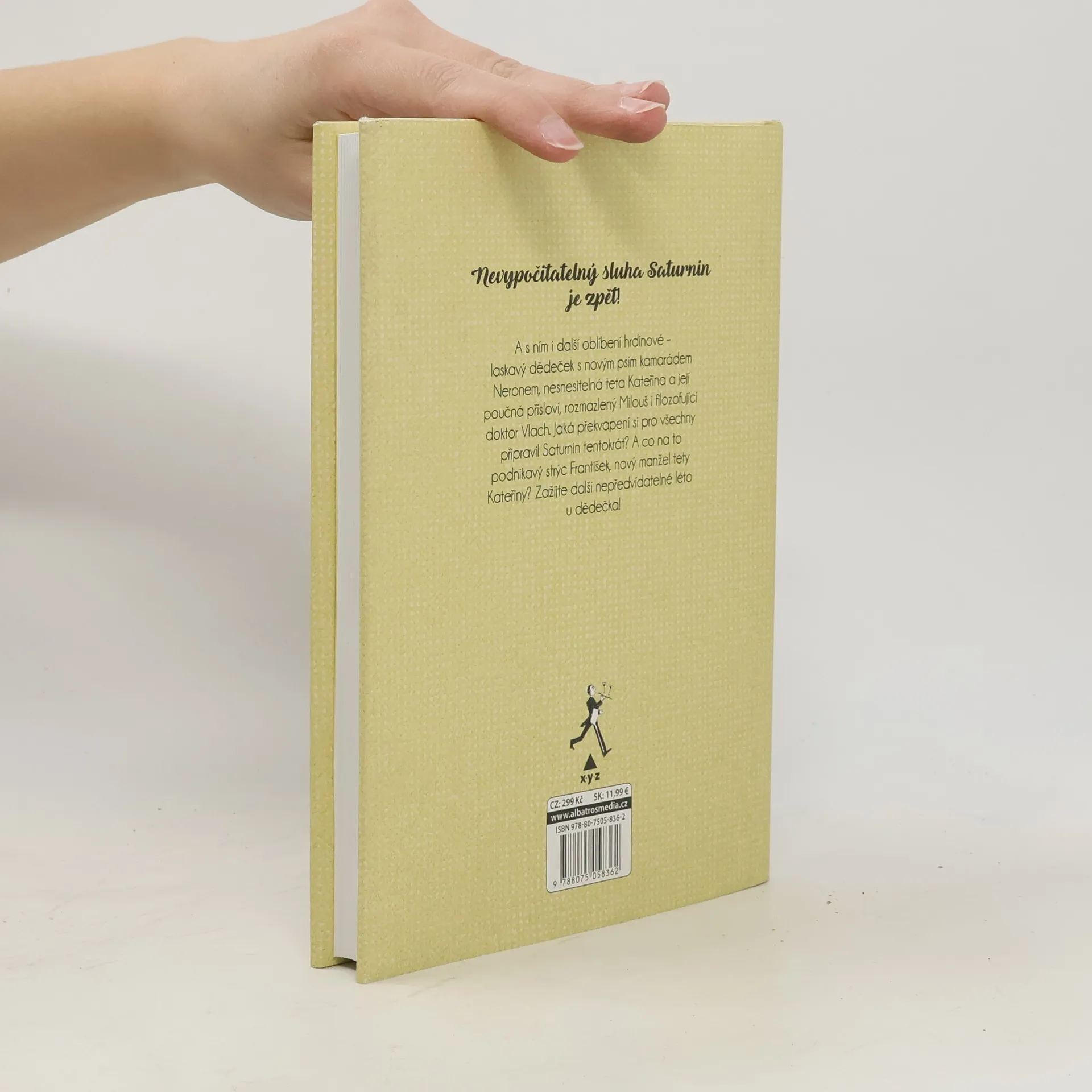 „Slavná humoristická kniha, která baví již několik generací čtenářů, pokračuje!“ Nevypočitatelný sluha Saturnin je zpět! A s ním i další oblíbení hrdinové – laskavý dědeček s novým psím kamarádem Neronem, nesnesitelná teta Kateřina a její poučná přísloví, rozmazlený Milouš i filozofující doktor Vlach. Jaká překvapení si pro všechny připravil Saturnin tentokrát? A co na to podnikavý strýc František, nový manžel tety Kateřiny? Zažijte další nepředvídatelné léto u dědečka!