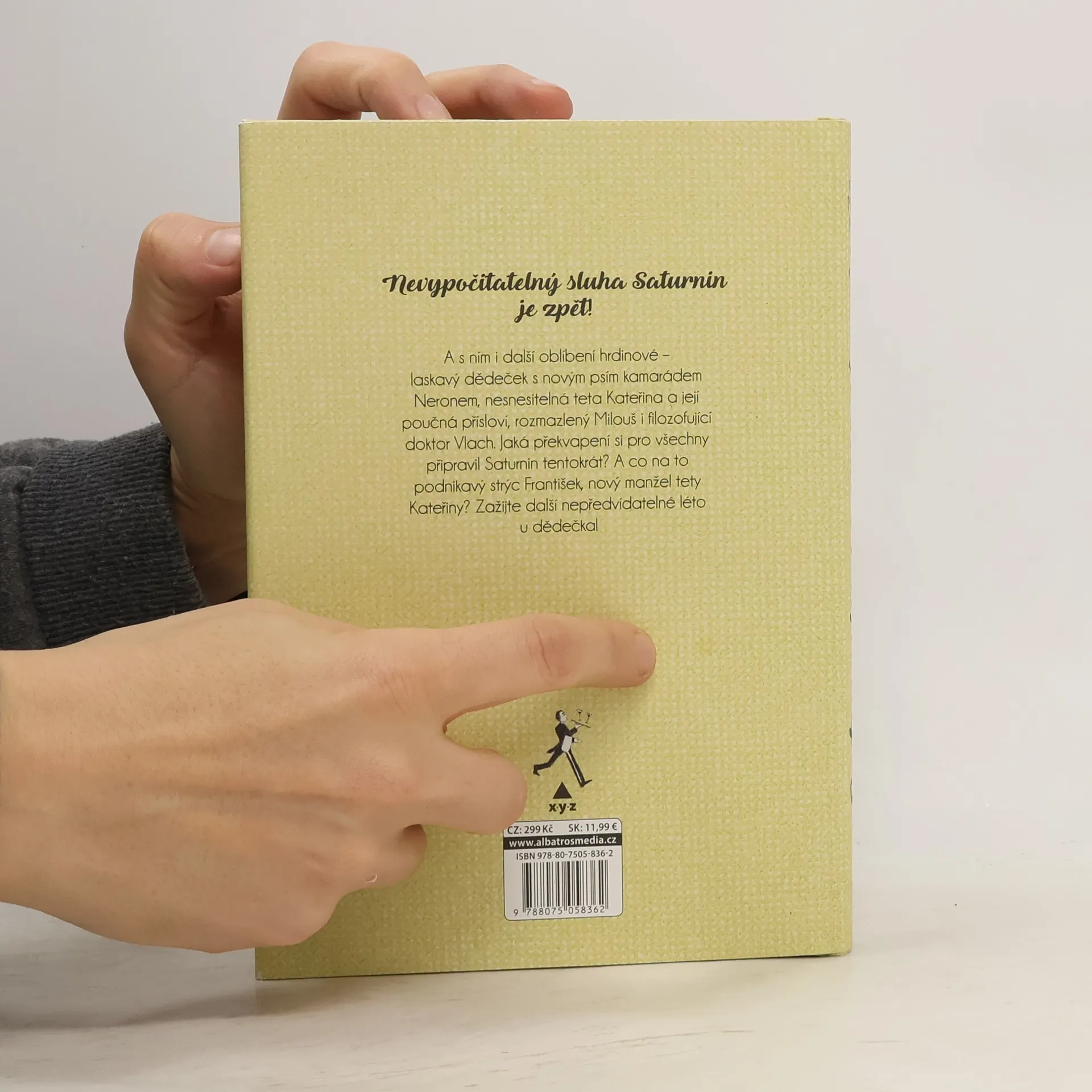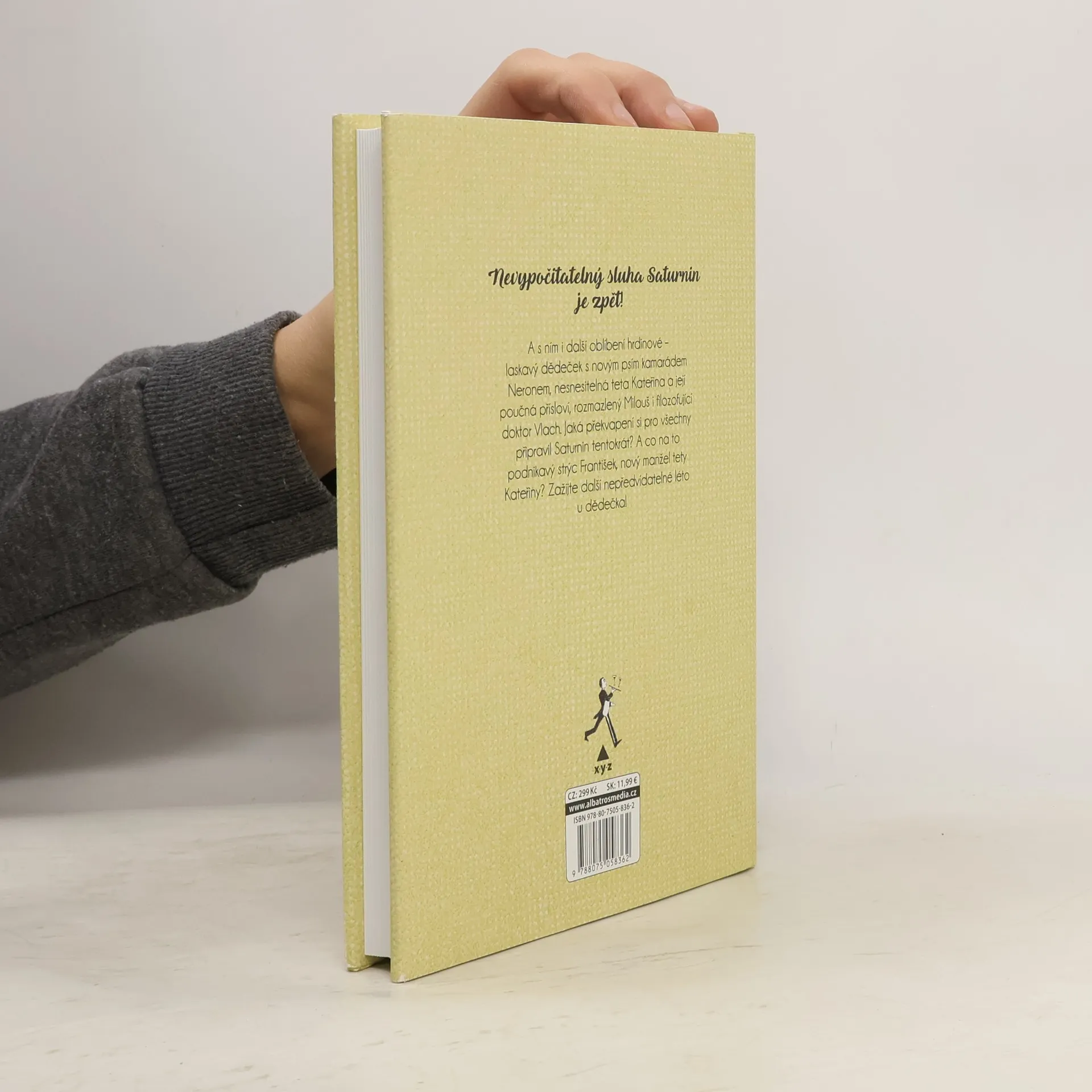 „Slavná humoristická kniha, která baví již několik generací čtenářů, pokračuje!“ Nevypočitatelný sluha Saturnin je zpět! A s ním i další oblíbení hrdinové – laskavý dědeček s novým psím kamarádem Neronem, nesnesitelná teta Kateřina a její poučná přísloví, rozmazlený Milouš i filozofující doktor Vlach. Jaká překvapení si pro všechny připravil Saturnin tentokrát? A co na to podnikavý strýc František, nový manžel tety Kateřiny? Zažijte další nepředvídatelné léto u dědečka!
