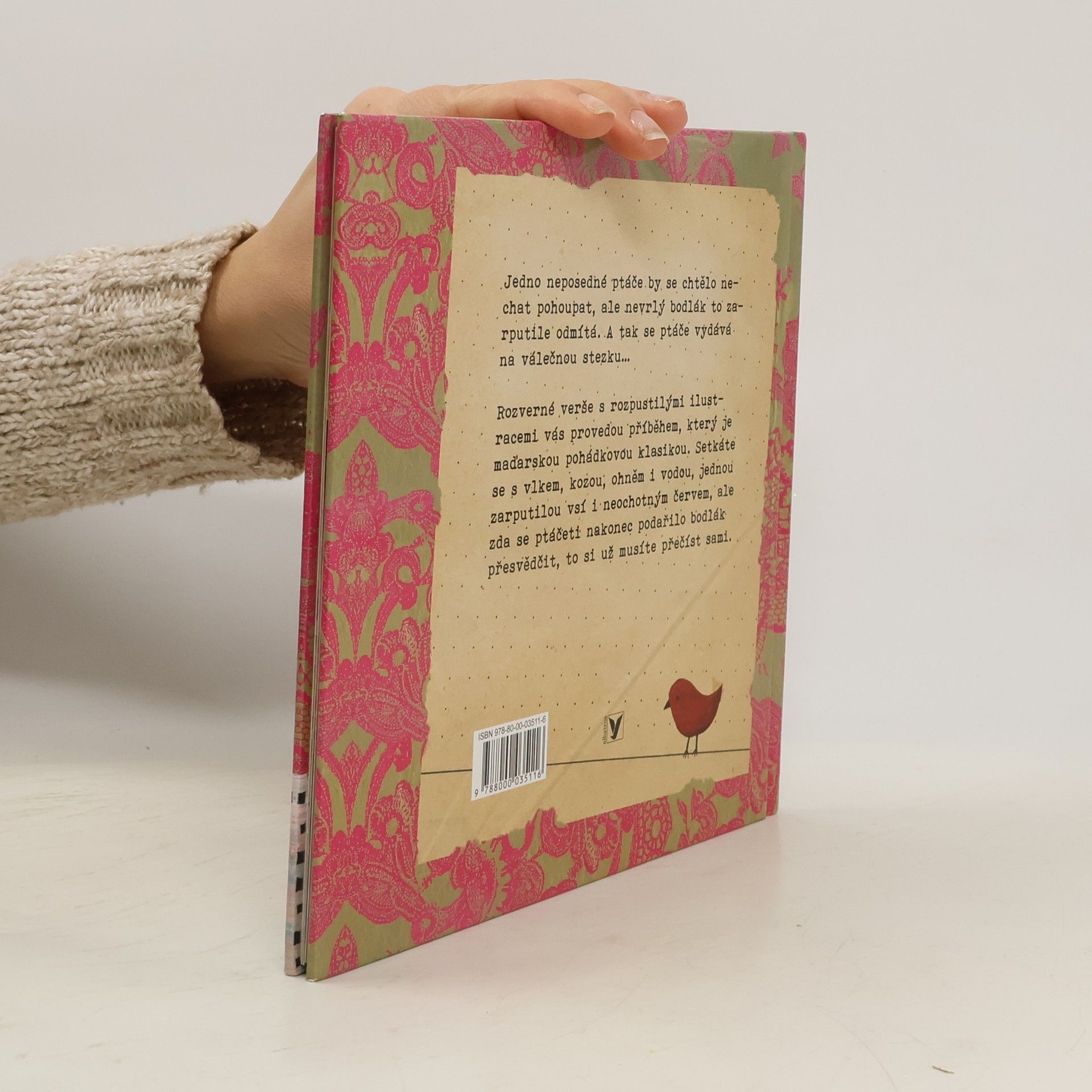 Klasická maďarská pohádka v moderním hávu. Přebásnění příběhu o ptáčeti, které se chtělo nechat pohoupat, a bodláku, který to zarputile odmítal. Vtipné a hravé vyprávění, které doprovází roztomilé ilustrace. Nechte se překvapit, zda se ptáčeti nakonec podařilo bodlák přesvědčit.