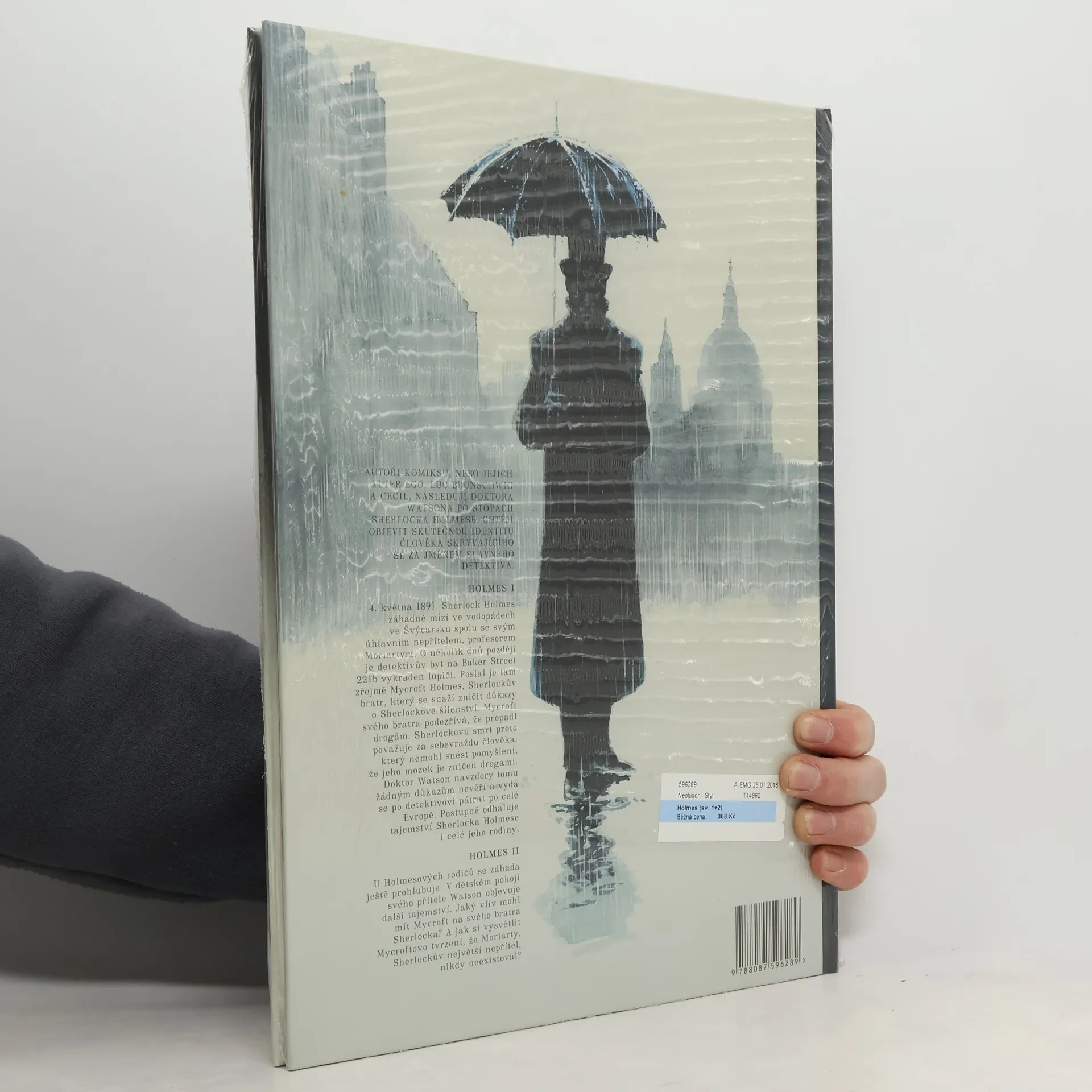 Autoři komiksu, nebo jejich alter ego, Luc Brunschwig a Cecil, následují doktora Watsona po stopách Sherlocka Holmese. Chtějí objevit skutečnou identitu člověka skrývajícího se za jménem slavného detektiva. Holmes I 4. května 1891. Sherlock Holmes záhadně mizí ve vodopádech ve Švýcarsku spolu se svým úhlavním nepřítelem, profesorem Moriartym. O několik dnů později je detektivův byt na Baker Street 221b vykraden lupiči. Poslal je tam zřejmě Mycroft Holmes, Sherlockův bratr, který se snaží zničit důkazy o Sherlockově šílenství. Mycroft svého bratra podezřívá, že propadl drogám. Sherlockovu smrt proto považuje za sebevraždu člověka, který nemohl snést pomyšlení, že jeho mozek je zničen drogami. Doktor Watson navzdory tomu žádným důkazům nevěří a vydá se po detektivovi pátrat po celé Evropě. Postupně odhaluje tajemství Sherlocka Holmese i celé jeho rodiny. Holmes II U Holmesových rodičů se záhada ještě prohlubuje. V dětském pokoji svého přítele Watson objevuje další tajemství. Jaký vliv mohl mít Mycroft na svého bratra Sherlocka? A jak si vysvětlit Mycroftovo tvrzení, že Moriarty, Sherlockův největší nepřítel, ve skutečnosti nikdy neexistoval?
