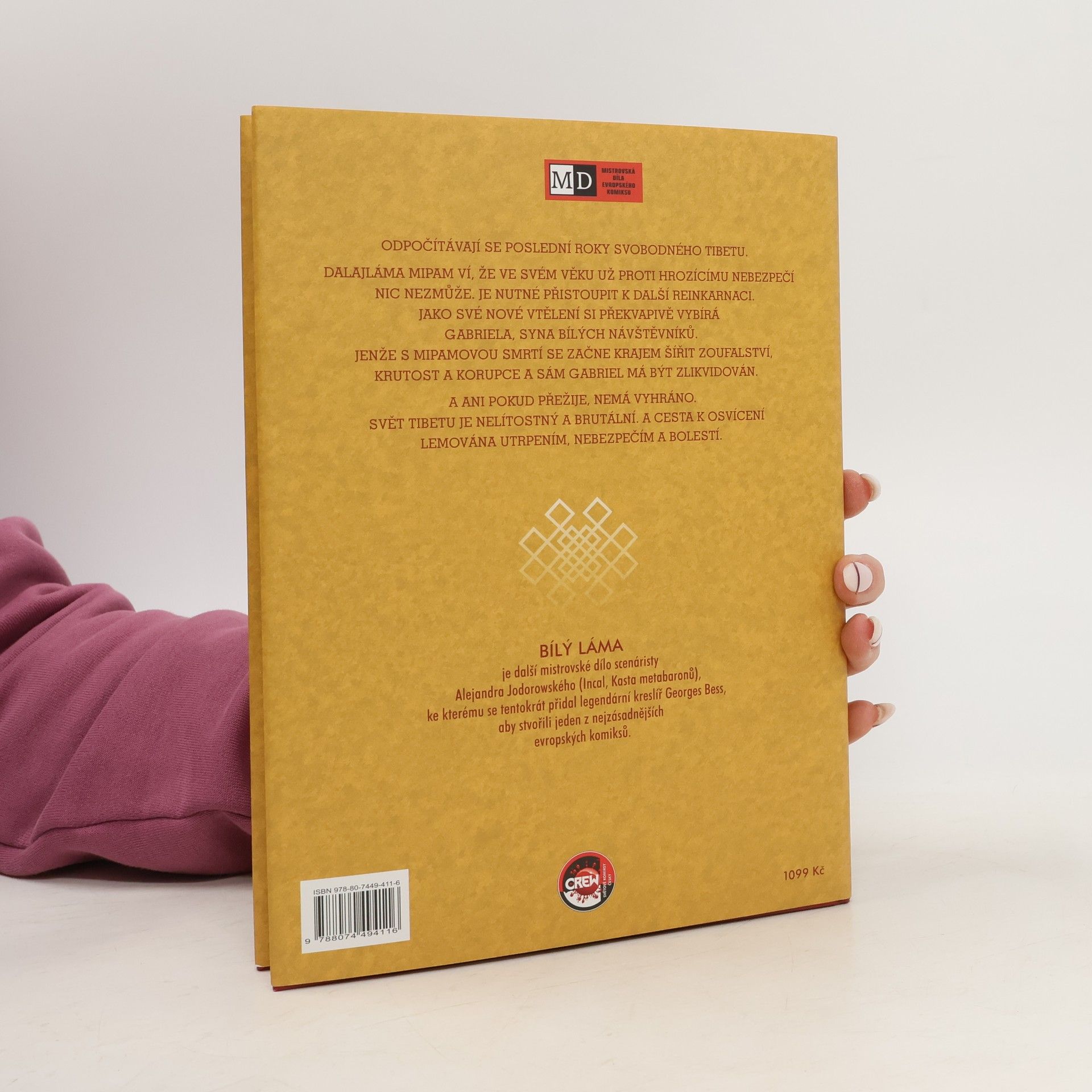 Odpočítávají se poslední roky svobodného Tibetu. Dalajláma Mipam ví, že ve svém věku už proti hrozícímu nebezpečí nic nezmůže. Je nutné přistoupit k další reinkarnaci. Jako své nové vtělení si překvapivě vybírá Gabriela, syna bílých návštěvníků. Jenže s Mipanovou smrtí se začne krajem šířit zoufalství, krutost a korupce a sám Gabriel má být zlikvidován. A ani pokud přežije, nemá vyhráno. Svět Tibetu je nelítostný a brutální. A cesta k osvícení lemována utrpením, nebezpečím a bolestí. Bílý Láma je další mistrovské dílo scenáristy Alejandra Jodorowského (Incal, Kasta metabaronů), ke kterému se tentokrát přidal legendární kreslíř George Bess, aby stvořili jeden z nejzásadnějších evropských komiksů.