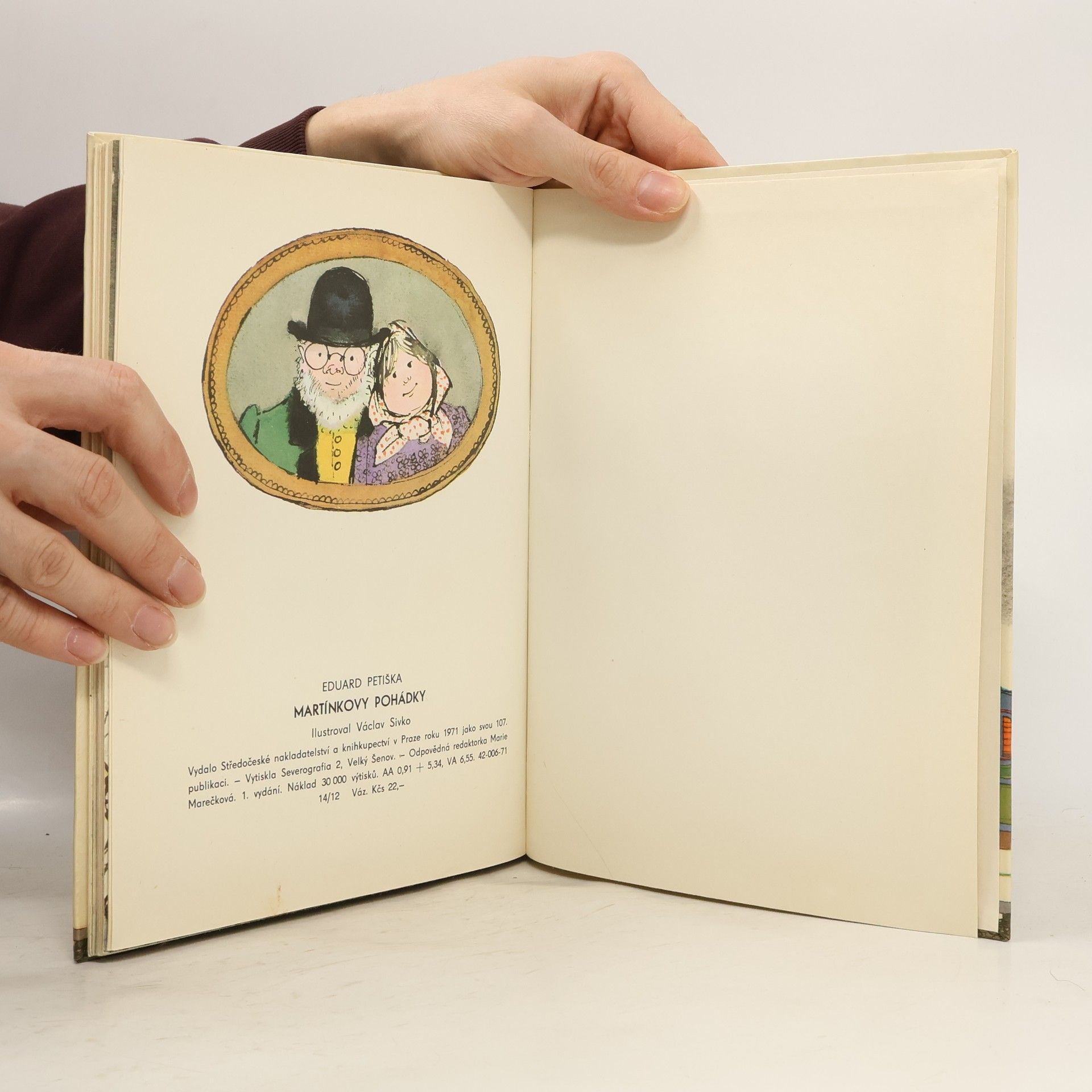 Knížka pohádek, které malý Martínek slýchal před spaním. Napsal E. Petiška, ilustroval Václav Sivko.