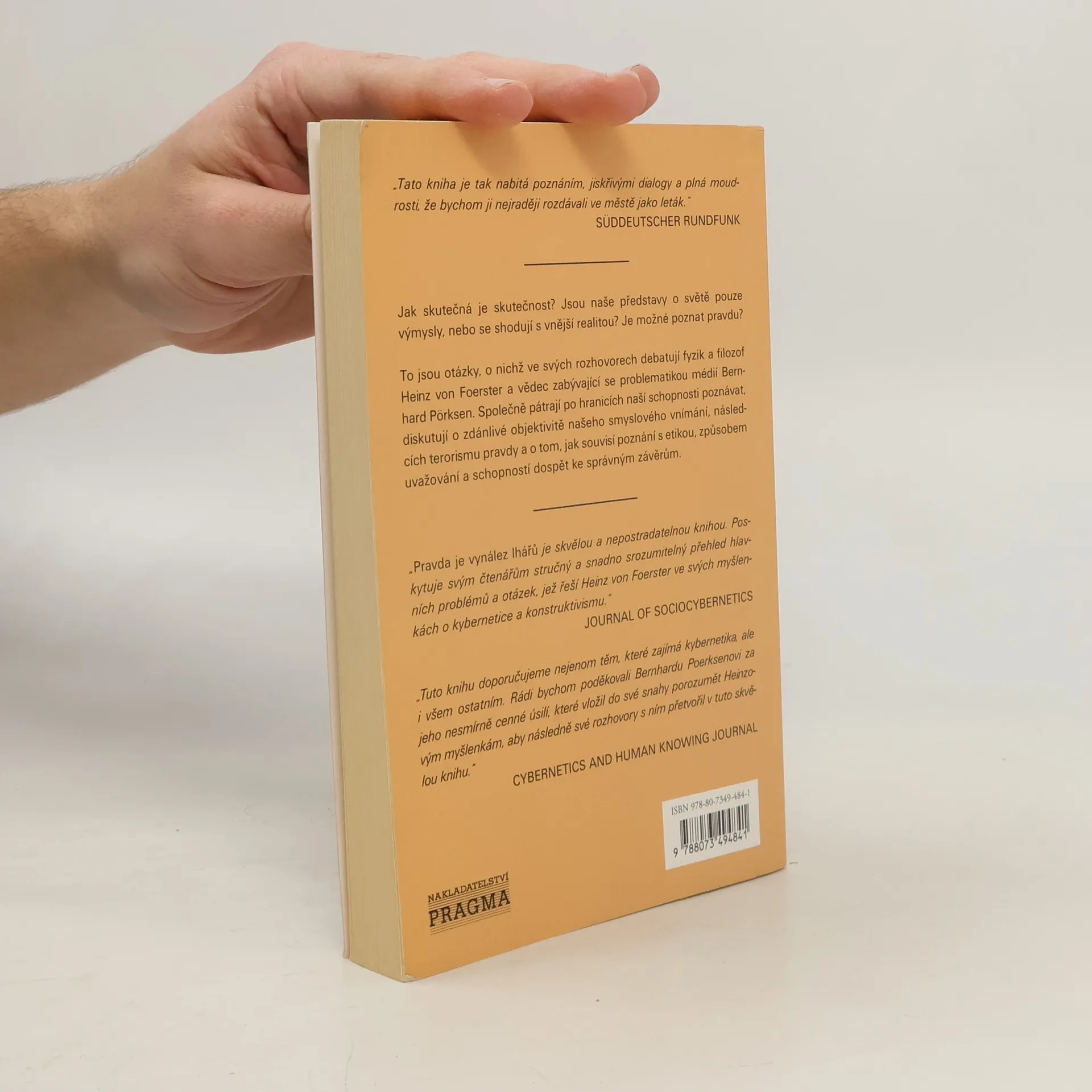 Jak skutečná je skutečnost? Jsou naše představy o světě pouze výmysly, nebo se shodují s vnější realitou? Je možné poznat pravdu? To jsou otázky, o nichž ve svých rozhovorech debatují fyzik a filozof Heinz von Foerster a vědec zabývající se problematikou médií Bernhard Pörksen. Společně pátrají po hranicích naší schopnosti poznávat, diskutují o zdánlivé objektivitě našeho smyslového vnímání, následcích terorismu pravdy a o tom, jak souvisí poznání s etikou, způsobem uvažování a schopností dospět ke správným závěrům.
