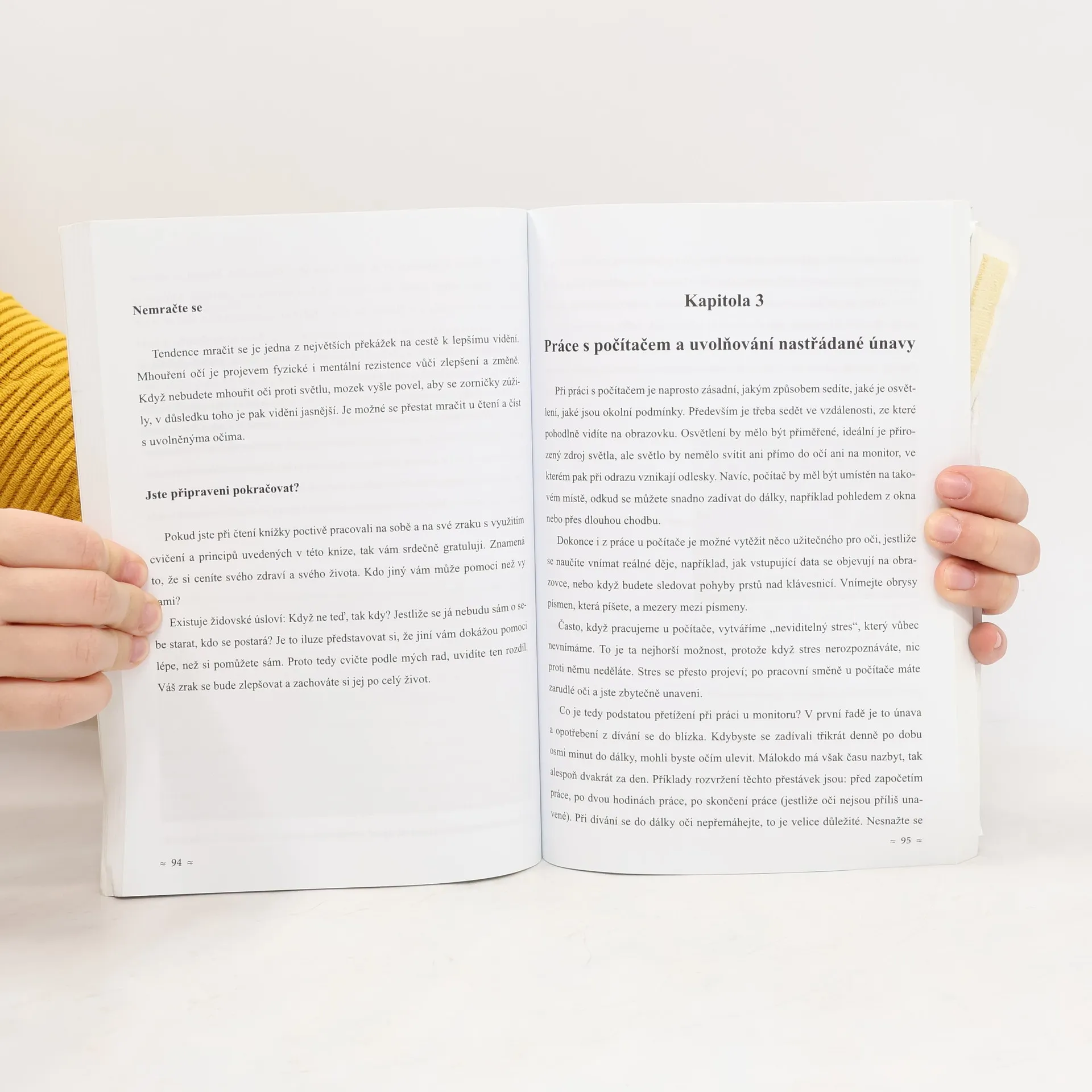 Autor předkládá veřejnosti vlastní zkušenost s nabytím zraku speciálními cviky. Narodil se jako nevidomý a po létech hledání a zkoušení vyvinul speciální techniky, které mu pomohly k tomu, že dnes vidí, řídí auto, čte. Svoje poznatky nabízí všem lidem, kteří mají jakékoliv potíže se zrakem. Poškozený zrak se dá vždy vylepšit, a to každodenním cvičením podle autorových doporučení. Pokrok lze zaznamenat nad očekávání brzy. Doporučujeme všem, kteří chtějí lépe vidět, odložit brýle či napravit šilhání a jiné očí vady.