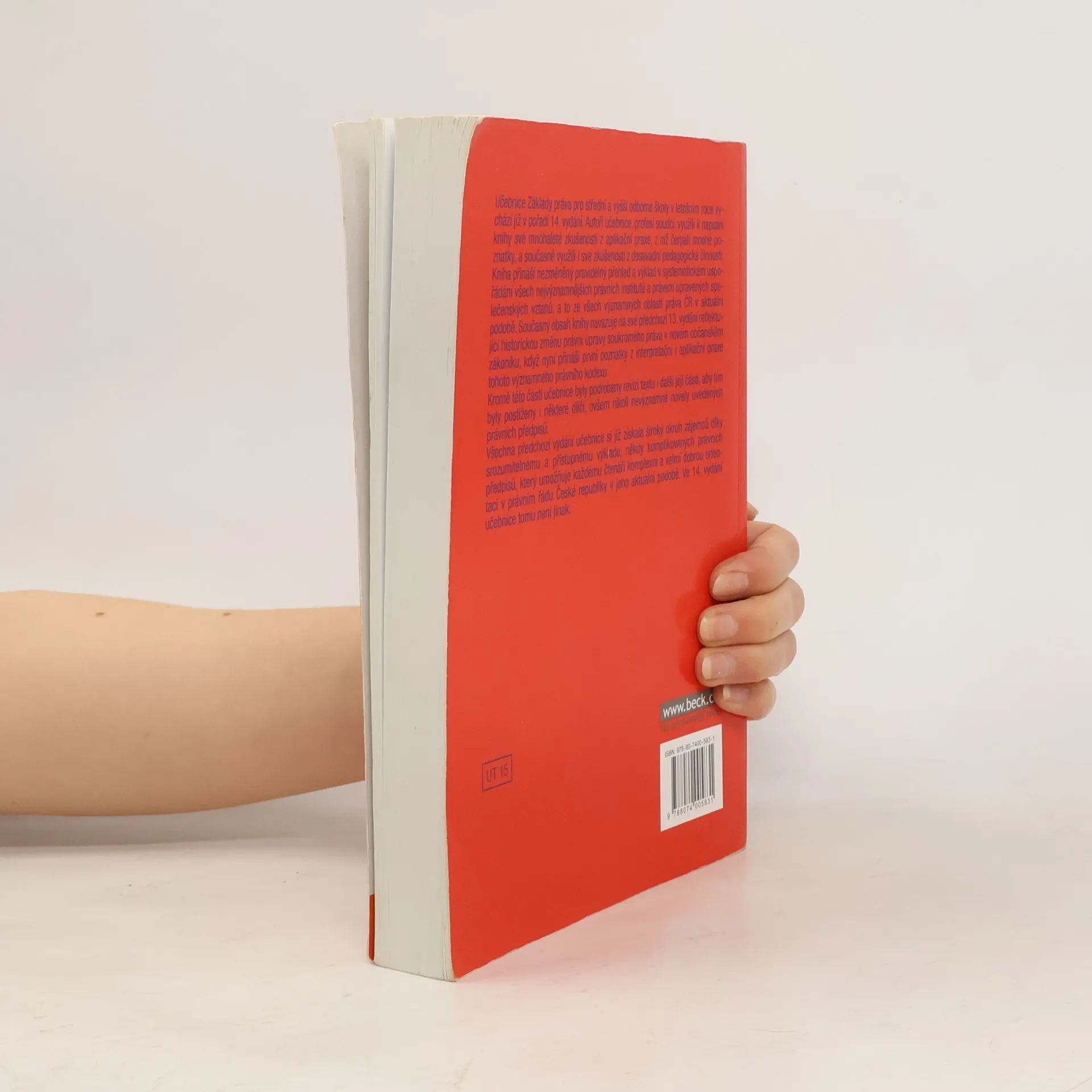 14. doplněné vydání. Autoři učebnice, profesí soudci, využili k napsání knihy své mnohaleté zkušenosti z aplikační praxe, z níž čerpali mnohé poznatky, a současně využili i své zkušenosti z dosavadní pedagogické činnosti. Kniha přináší nezměněný pravidelný přehled a výklad v systematickém uspořádání všech nejvýznamnějších právních institutů a právem upravených společenských vztahů, a to ze všech významných oblastí práva ČR v aktuální podobě. Současný obsah knihy navazuje na své předchozí 13. vydání reflektující historickou změnu právní úpravy soukromého práva v novém občanském zákoníku, když nyní přináší první poznatky z interpretační i aplikační praxe tohoto významného právního kodexu. Kromě této části učebnice byly podrobeny revizi textu i další její části, aby tím byly postiženy i některé dílčí, ovšem nikoli nevýznamné novely uvedených právních předpisů. Všechna předchozí vydání učebnice si již získala široký okruh zájemců díky srozumitelnému a přístupnému výkladu, někdy komplikovaných právních předpisů, který umožňuje každému čtenáři komplexní a velmi dobrou orientaci v právním řádu České republiky v jeho aktuální podobě. Ve 14. vydání učebnice tomu není jinak.