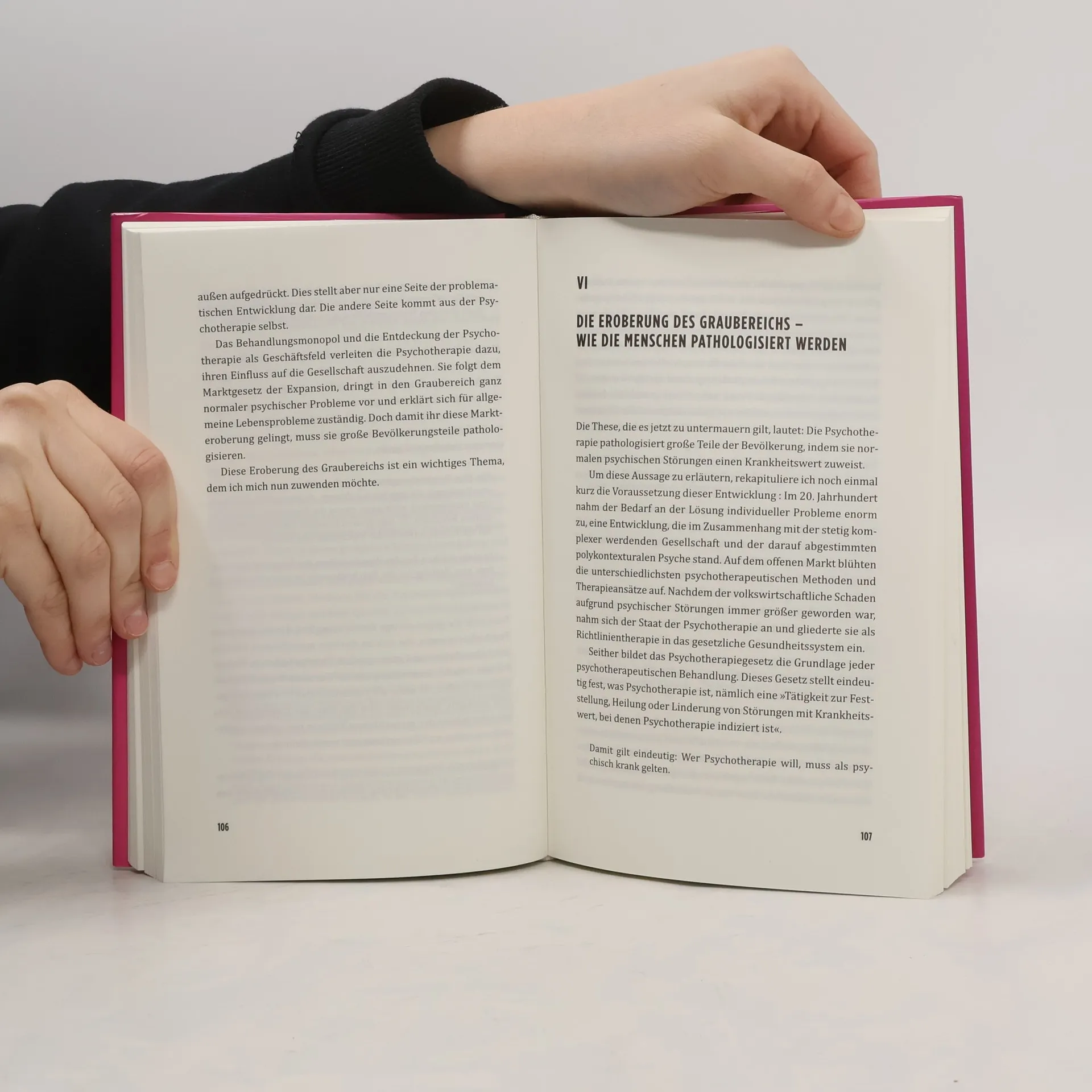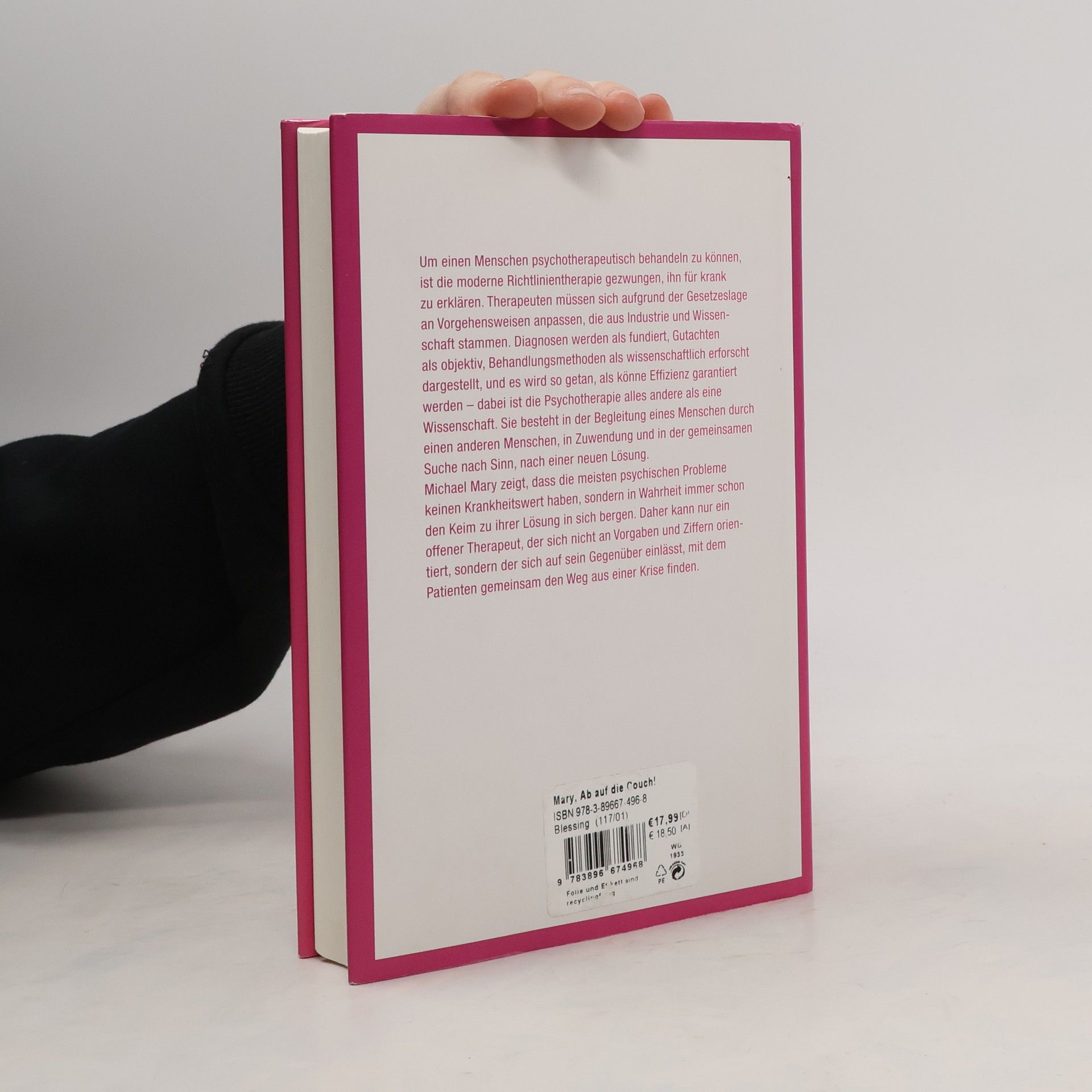 In einer komplexen Gesellschaft mit hohem Leistungsdruck nehmen psychische Probleme zu. Die in Deutschland anerkannten Behandlungsmethoden – Tiefenpsychologische Psychotherapie, Psychoanalyse und Verhaltenstherapie – klassifizieren viele psychische Störungen als behandlungsbedürftig. Dadurch erscheinen Probleme wie Arbeitssucht, Internetsucht und Burn-out plötzlich therapiewürdig. Gleichzeitig steigt die Einnahme von Antidepressiva erheblich, was zu einer Pathologisierung der Gesellschaft führt. Michael Mary kritisiert die Entwicklung der Psychotherapie, die seit ihrer staatlichen Aufsicht an Qualität verloren hat. Um Menschen mit normalen Problemen zu helfen, müssen sie als psychisch krank eingestuft werden, was in ein fragwürdiges Diagnose- und Behandlungssystem mündet. Dabei wird fälschlicherweise angenommen, dass Psychotherapie wissenschaftlich und objektiv sei. Der Autor argumentiert, dass viele psychische Probleme keinen Krankheitswert haben und die Lösungen oft bereits in den Betroffenen selbst liegen. Nur Therapeuten, die sich auf ihre Klienten einlassen und nicht an strikte Vorgaben gebunden sind, können gemeinsam Wege aus Krisen finden. Zudem skizziert der Autor eine „Psychotherapie des Graubereichs“, die psychische Probleme als normale Phänomene in einer Gesellschaft betrachtet, in der Menschen multiple Identitäten annehmen müssen.