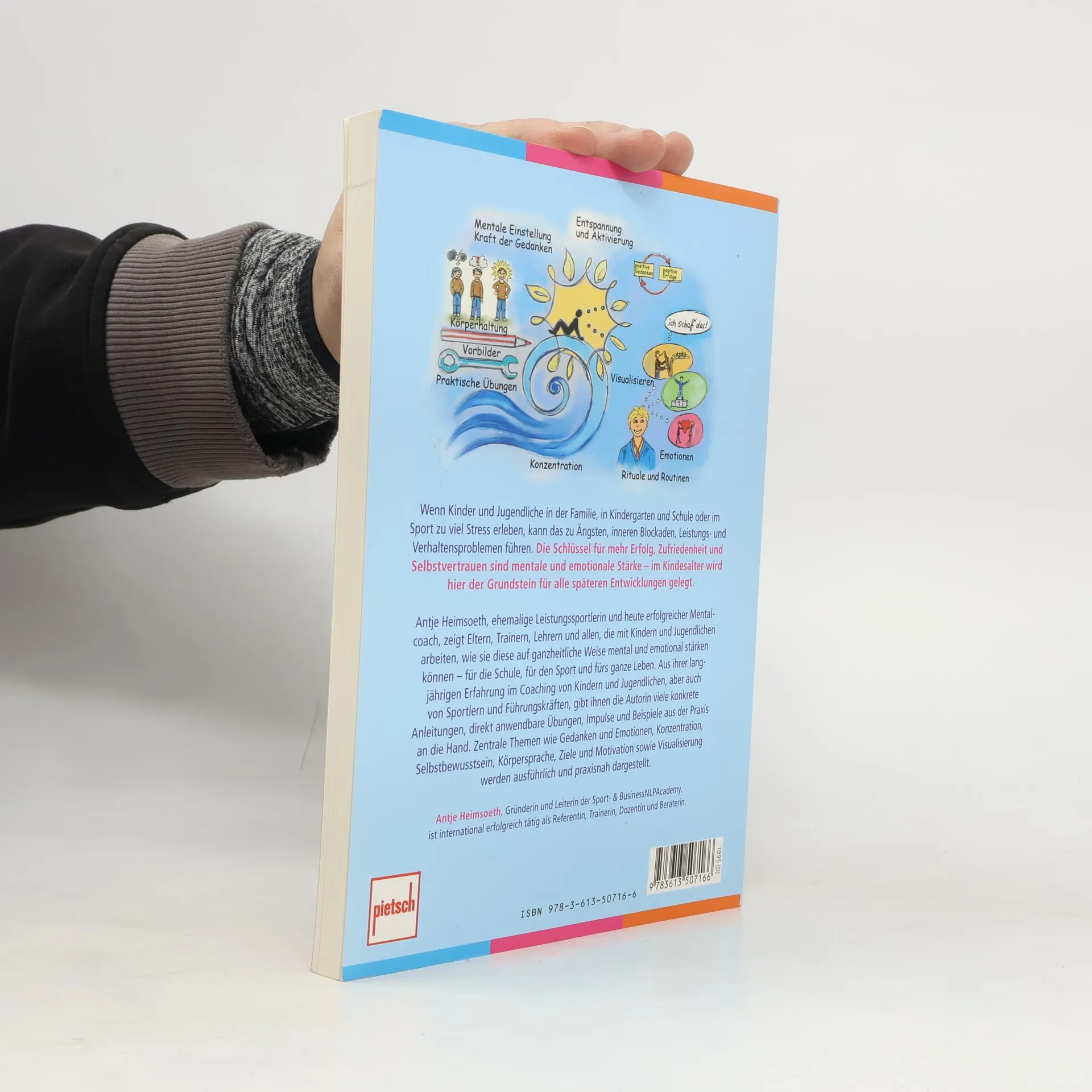 Zahlreiche Kinder und Jugendliche erleben in Familie, Kindergarten, Schule oder im sozialen Umfeld Situationen, die Stress verursachen. Das kann zu Ängsten, inneren Blockaden, Schul- und Verhaltensproblemen führen. Mentaltraining kann Kindern und Jugendlichen helfen, das innere Gleichgewicht wieder zu finden, sich zu entspannen, konzentriert zu lernen, mit ihren Ängsten umzugehen und selbstbewusst zu werden. Mentaltrainerin Antje Heimsoeth arbeitet seit Jahren erfolgreich mit Kindern und Jugendlichen und zeigt ihnen Wege auf, wie sie ihr Potential in Alltag, Schule und Sport voll ausnutzen können.