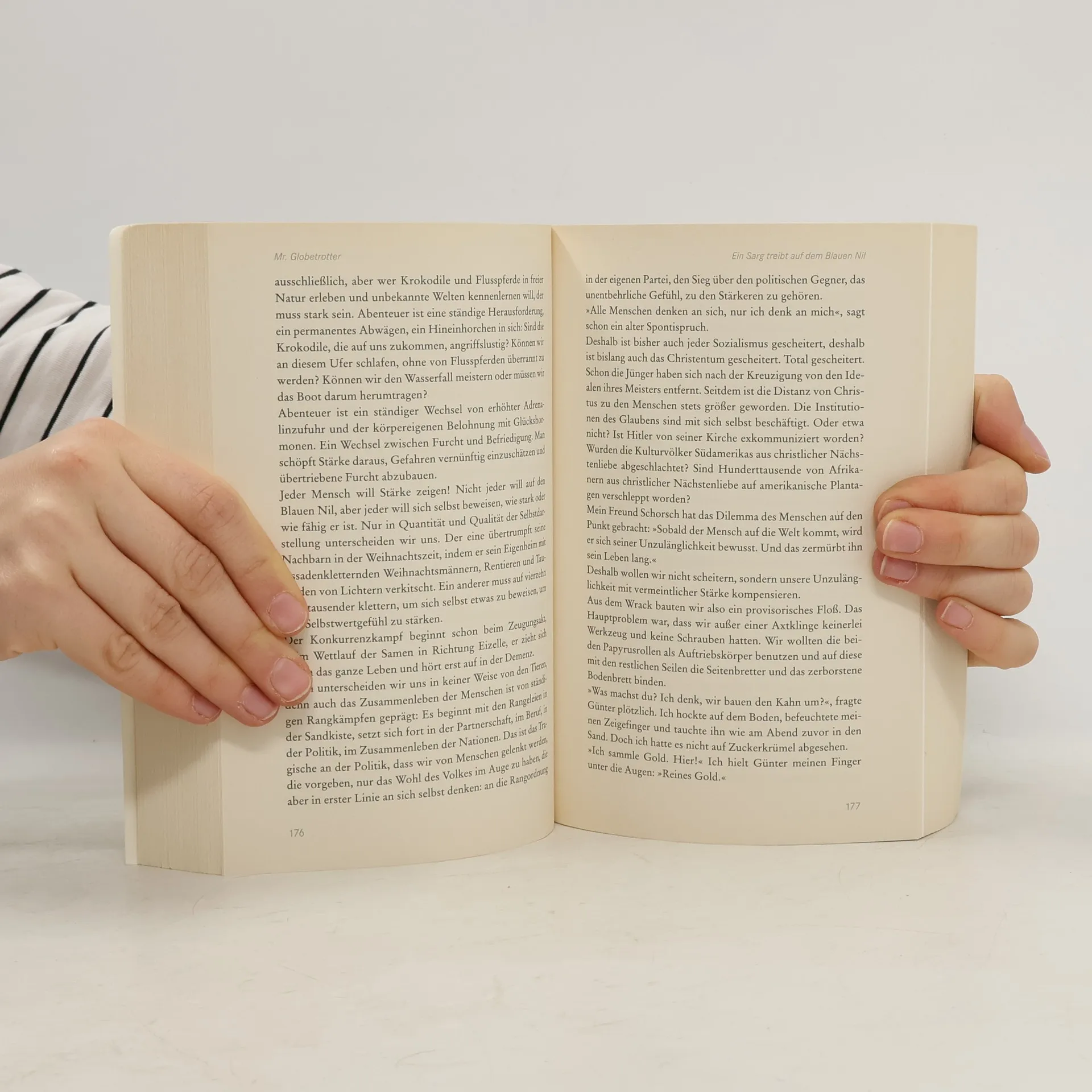 Eine Autobiografie, fesselnd wie ein Abenteuerroman. Vorwort von Rüdiger Nehberg Wer das Fernweh kennt, wen das Abenteuer lockt, der kommt um den Lebensbericht von Klaus Denart nicht herum. Einer ganzen Generation moderner Abenteurer ist er ein großes Vorbild. Fasziniert von seiner unstillbaren Neugier, die eigenen Grenzen auszuloten, erlebt der Leser die Abenteuer des Autors hautnah mit. Man befährt gemeinsam mit ihm den Blauen Nil in einem hölzernen Sarg oder durchquert zu Fuß den lateinamerikanischen Dschungel. Anhand dieser spannenden und authentischen Reiseberichte voll hintergründigem Humor und scharfsinniger Reflexionen lernt man die beeindruckende Persönlichkeit des Autors kennen. Die Erkenntnisse und Erfahrungen, die Klaus Denart aus diesen Abenteuern gewonnen hat, haben ihn entscheidend beim Aufbau seines Unternehmens Globetrotter Ausrüstung beeinflusst. Mit seiner besonderen Unternehmensphilosophie wurde es zum größten Outdoor-Händler in Europa.
