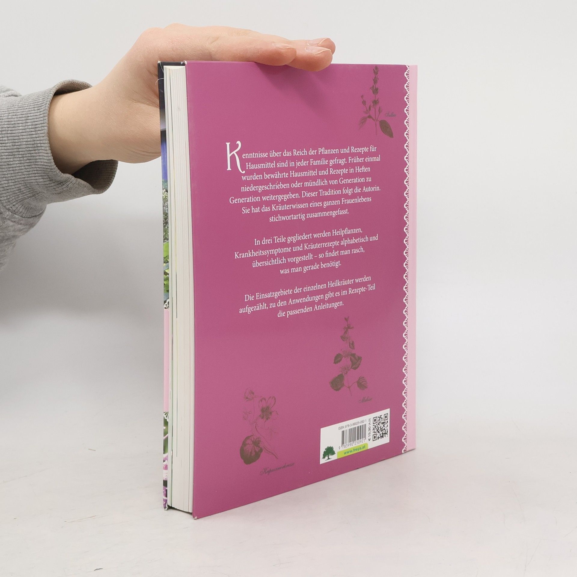 Früher einmal wurde in den Familien alles aufgeschrieben oder mündlich übermittelt, was sich an Hausmitteln und Rezepten bewährt hatte. Dieser Tradition folgt die Autorin. Sie sammelte die besonderen Rezepte eines reichen Familien- und Frauenlebens und gibt sie weiter. Rezepte aus Pflanzen und Hausmittel, bei denen Kräuter verwendet werden, sind vielfältig und in jeder Familie einsetzbar. Die Übersichtlichkeit und die alphabetischen Auflistungen machen es leicht, das Richtige für sich selbst zu finden. Es gibt die Möglichkeit, die Einsatzgebiete der Pflanzen zu erkunden, oder sich am Symptome-Katalog zu orientieren. Pflanzen werden so zum Bestandteil des Alltags und können bei verschiedensten Wehwehchen eingesetzt werden.