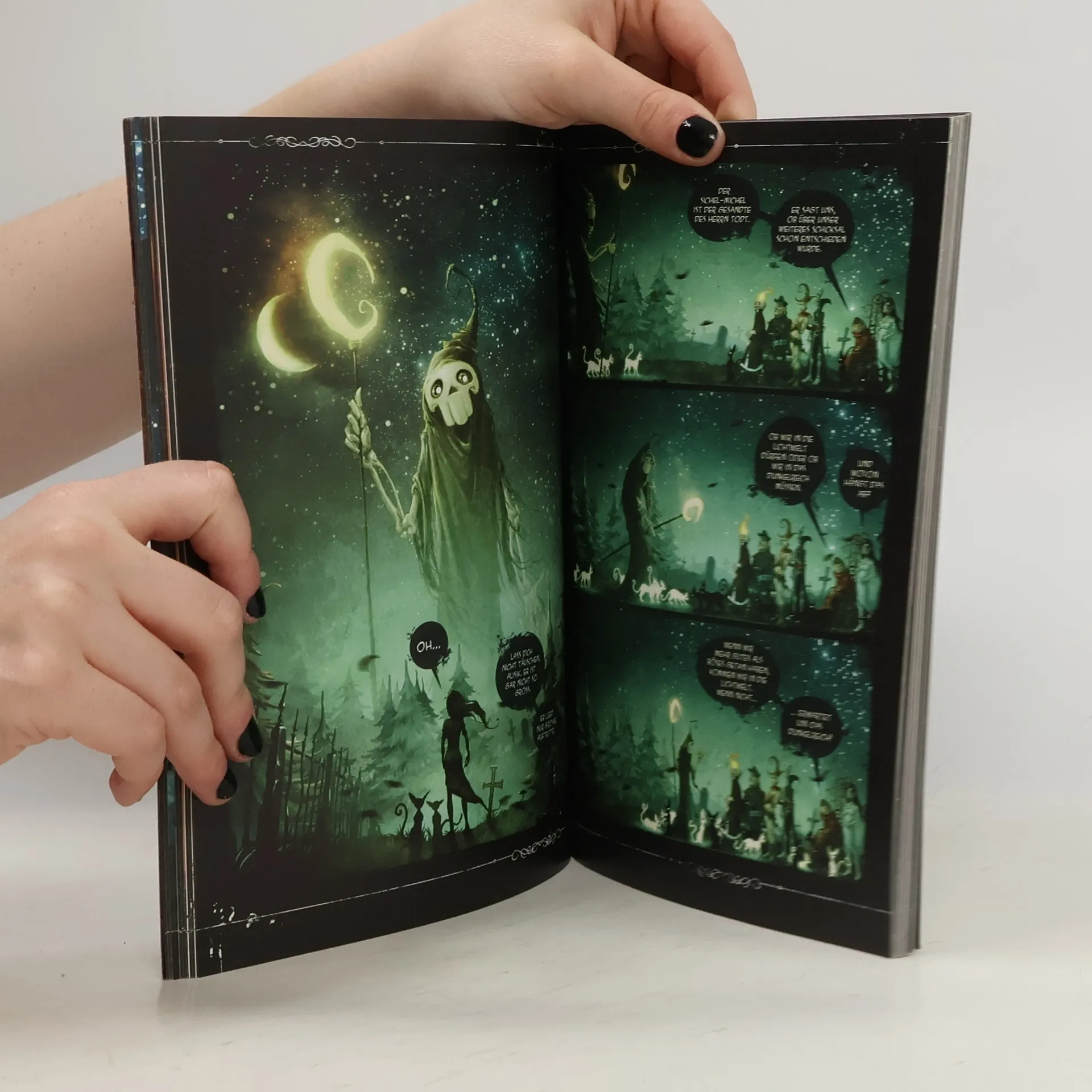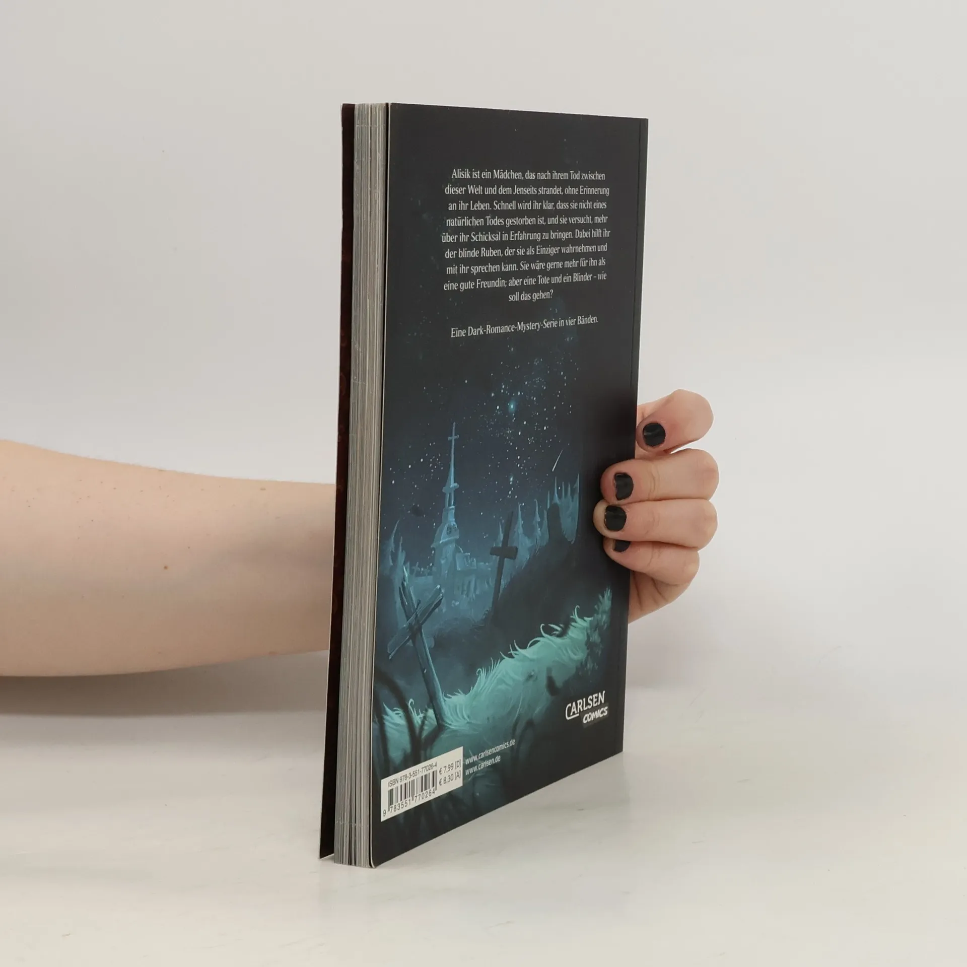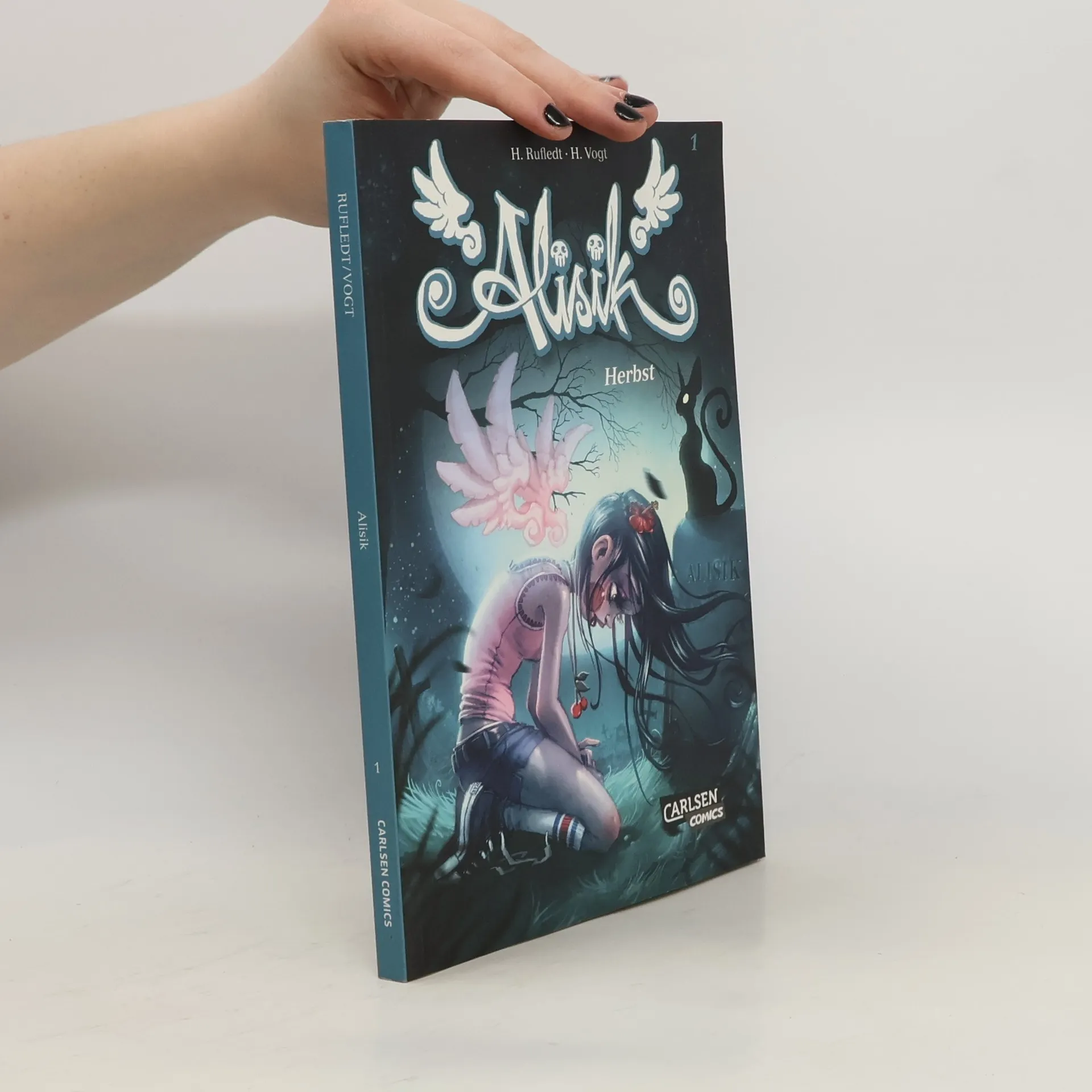Schock auf dem alten Friedhof Eines schönen Tages schlägt Alisik die Augen auf und stellt fest: sie ist tot! Umgeben von seltsamen Gestalten findet sie sich auf einem alten Friedhof wieder. Ohne klare Erinnerungen an ihr Leben, versucht sie herauszubekommen, wer sie ist (oder war) und warum sie gestorben ist. Dabei hilft ihr der blinde Ruben, der sie als einziger wahrnehmen und mit ihr sprechen kann. Sie wäre gerne mehr für ihn als eine gute Freundin, aber eine Tote und ein Blinder – wie soll das gehen? Märchenhafte Bilder Dies ist der erste Band einer bittersüßen Liebesgeschichte zwischen Leben und Tod. Das Comic-Team aus Helge Vogt und Hubertus Rufledt hat dieser wunderbare dunkle Liebesgeschichte geschaffen und in fantastische und märchenhafte Bilder umgesetzt. Wer schon immer mal wissen wollte, wie es im Reich des Herrn Todt aussieht und ob ein blinder Junge und ein (un)totes Mädchen sich ineinander verlieben können, sollte unbedingt diese Serie lesen.
