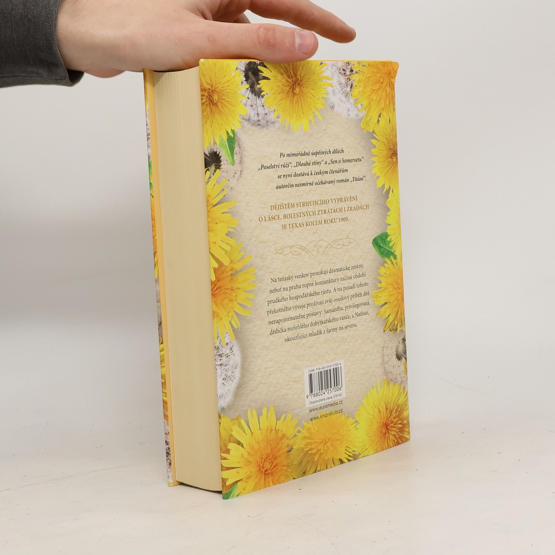 Dějištěm strhujícího vyprávění o lásce, bolestných ztrátách i zradách je Texas, který se kolem roku 1900 ocitá na prahu ropné konjunktury, jež odstartuje období prudkého hospodářského růstu. Na pozadí dramatických změn pronikajících na texaský venkov prožívají svůj osudový příběh dvě nezapomenutelné postavy: Samantha, privilegovaná dědička rozlehlého dobytkářského ranče, a Nathan, okouzlující mladík z farmy na severu.