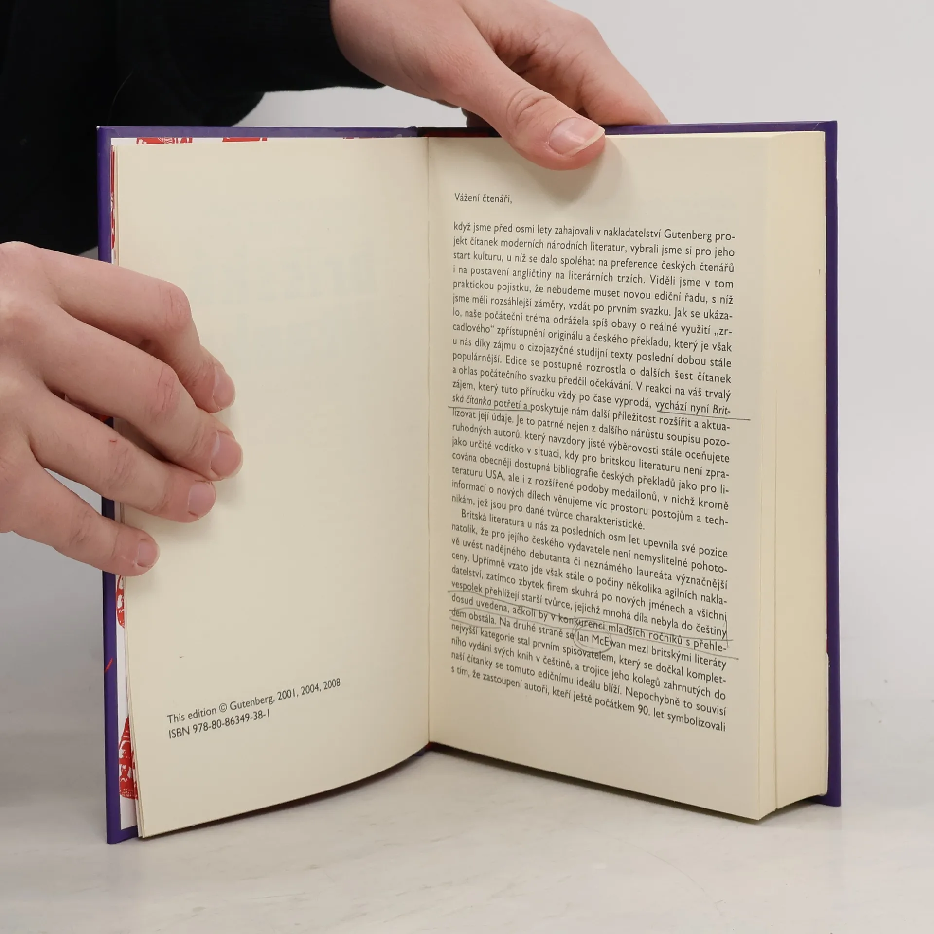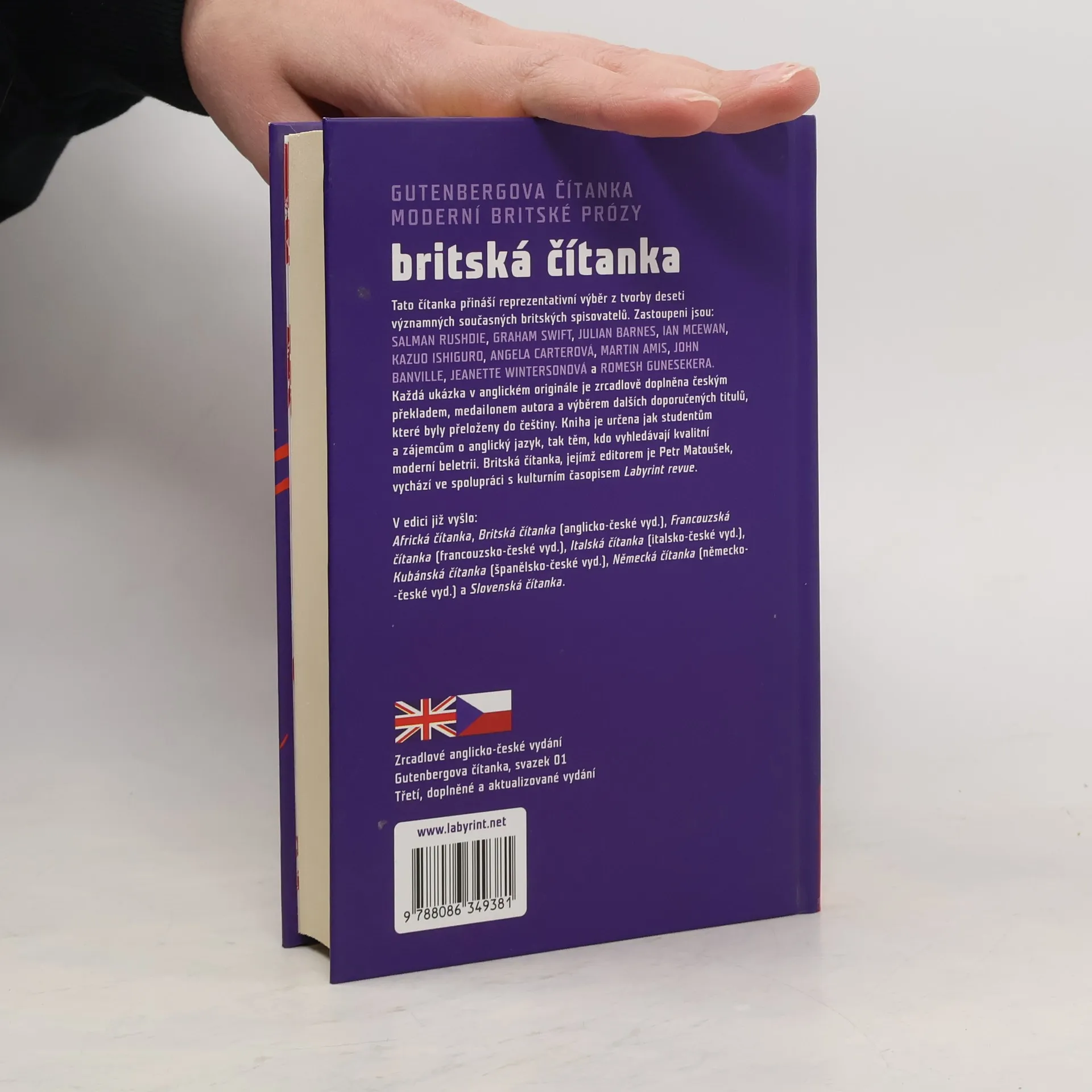 Gutenbergova čítanka současné britské prózy. Reprezentativní výběr z tvorby deseti významných současných britských prozaiků. Každá ukázka v anglickém originále je zrcadlově doplněna českým překladem, medailony autorů a výběrem dalších doporučených titulů, které byly v posledních desetiletích přeloženy do češtiny. Kniha je určena jak studentům a zájemcům o anglický jazyk, tak i těm, kdo vyhledávají kvalitní moderní beletrii. Originální texty: Salman Rushdie, Graham Swift, Julian Barnes, Ian McEwan, Kazuo Ishiguro, Angela Carter, Martin Amis, John Banville, Jeanette Winterson, Romesh Gunesekera. 3., doplněné a aktualizované vyd.