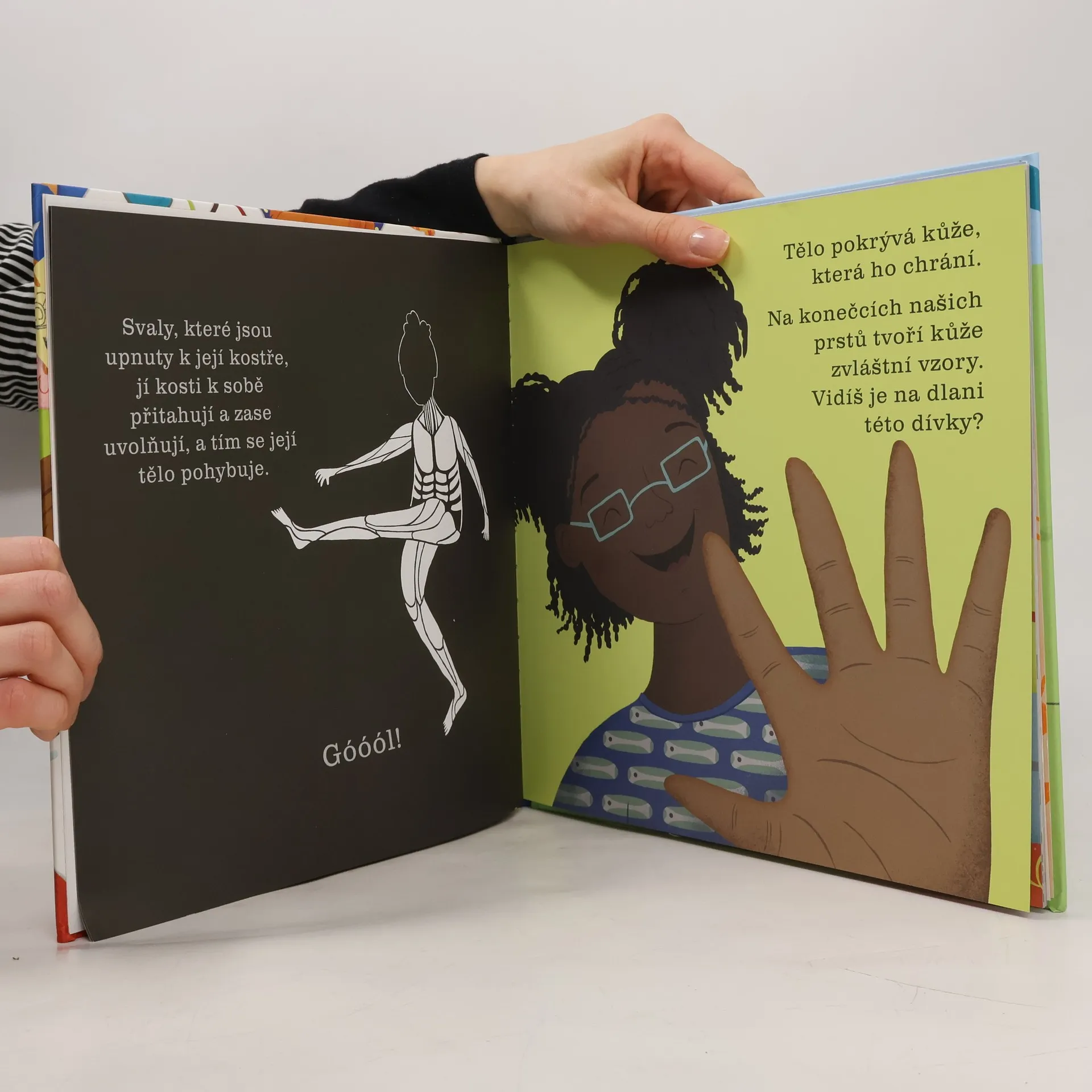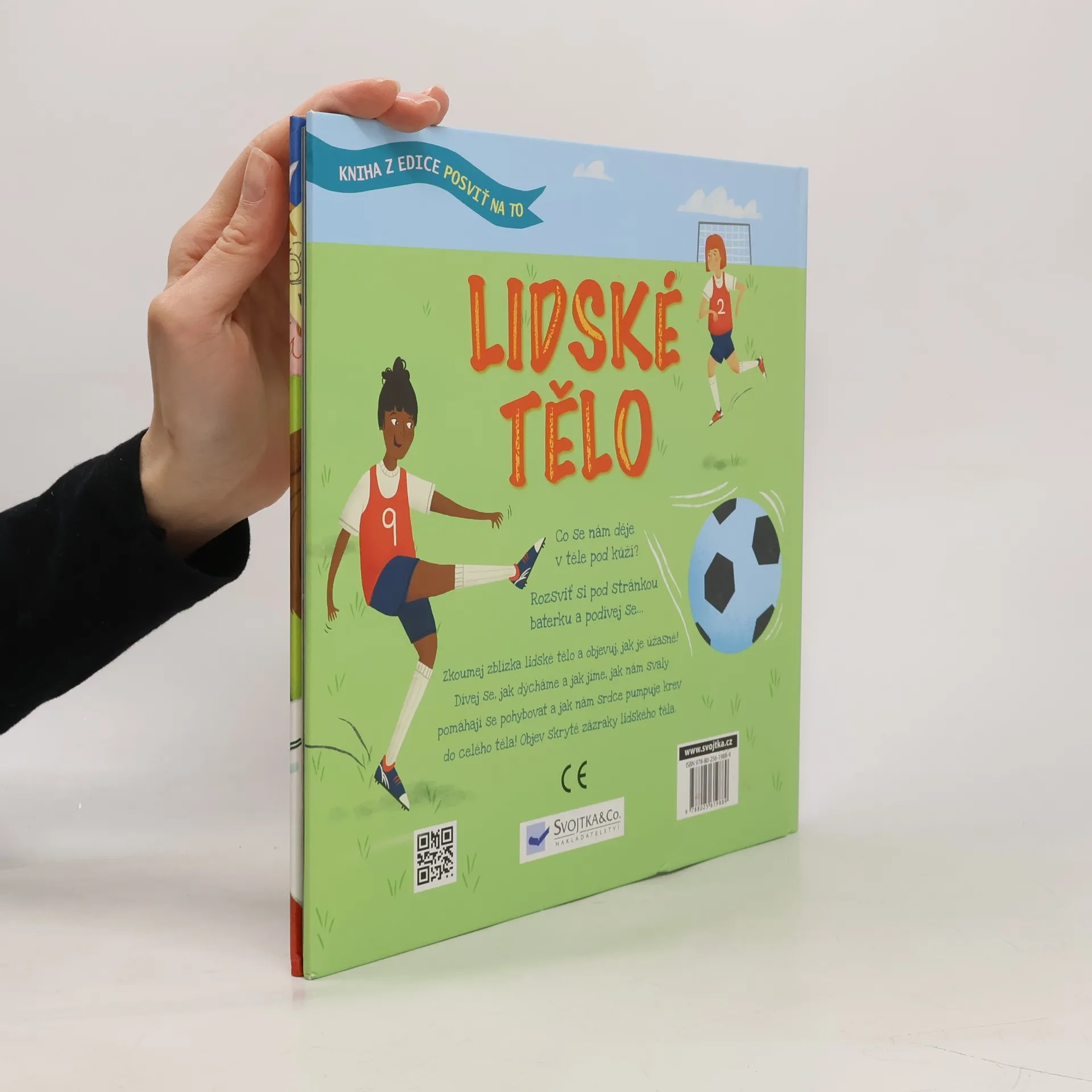 Přidrž si stránky knihy proti světlu nebo je prosviť zespodu baterkou… nahlédneš přímo dovnitř lidského těla! Posviť si na to, jak to v lidském těle funguje. Víš, co se lidem odehrává v těle pod kůží? Představ si, že by stačilo posvítit si na to baterkou a vše uvidíš jako na dlani! Tak přesně tohle je teď možné díky této fantasticky zábavné knížce, která odhaluje skrytá tajemství lidského těla. Zkoumej zblízka lidské tělo a objevuj, jak je úžasné! Podívej se důkladně na to, jak dýcháme a jak jíme, jak nám svaly pomáhají se pohybovat a jak nám srdce pumpuje krev do celého těla! Objev skryté zázraky lidského těla. Připrav si svítilnu a vydej se objevovat skrytý svět plný velkých překvapení. Ideální čtení pod peřinu!