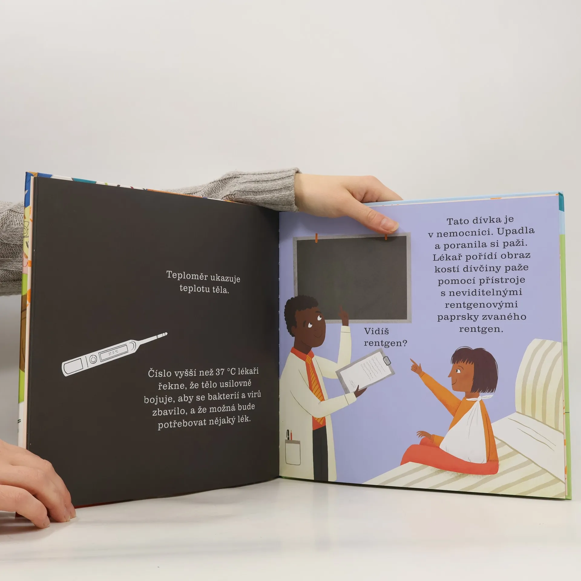 Přidrž si stránky knihy proti světlu nebo je prosviť zespodu baterkou… nahlédneš přímo dovnitř lidského těla! Posviť si na to, jak to v lidském těle funguje. Víš, co se lidem odehrává v těle pod kůží? Představ si, že by stačilo posvítit si na to baterkou a vše uvidíš jako na dlani! Tak přesně tohle je teď možné díky této fantasticky zábavné knížce, která odhaluje skrytá tajemství lidského těla. Zkoumej zblízka lidské tělo a objevuj, jak je úžasné! Podívej se důkladně na to, jak dýcháme a jak jíme, jak nám svaly pomáhají se pohybovat a jak nám srdce pumpuje krev do celého těla! Objev skryté zázraky lidského těla. Připrav si svítilnu a vydej se objevovat skrytý svět plný velkých překvapení. Ideální čtení pod peřinu!