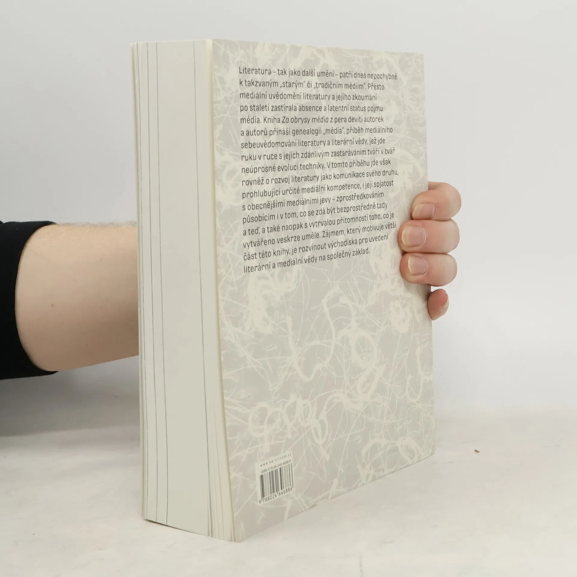 Literatura – tak jako další umění – patří ke skupině toho, co dnes nazveme „tradičními médii“. Přesto mediální uvědomění literatury a jejího zkoumání po staletí zastírala absence a latentní status pojmu média. Kniha Za obrysy média z pera devíti autorek a autorů přináší genealogii „média“, příběh mediálního sebeuvědomování literatury a literární vědy, jež jde ruku v ruce s jejich zdánlivým zastaráváním tváří v tvář neúprosné evoluci techniky. V tomto příběhu jde ale také o rozvoj literatury jako komunikace svého druhu, prohlubujícího určité mediální kompetence, i její spjatost s obecnějšími mediálními jevy – zprostředkováním působícím i v tom, co se zdá být bezprostředně tady a teď, a také naopak s vytrvalou přítomností toho, co je vytvářeno veskrze uměle. Zájmem, který motivuje velkou část této knihy, je rozvinout východiska pro uvedení literární a mediální vědy na společný základ.