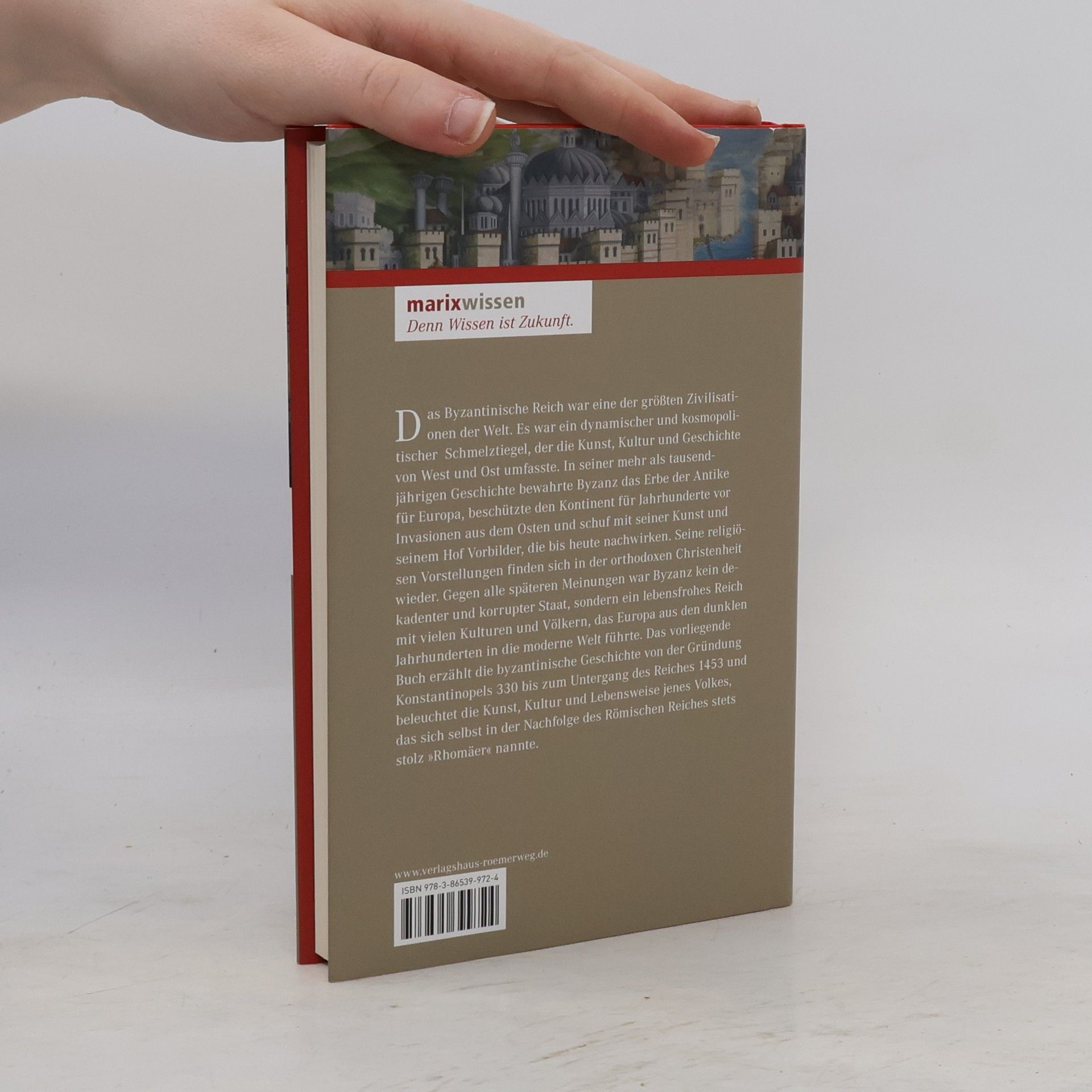 Das Byzantinische Reich war eine der größten Zivilisationen der Welt. Es war ein dynamischer und kosmopolitischer Schmelztiegel, der die Kunst, Kultur und Geschichte von West und Ost umfasste. In seiner mehr als tausendjährigen Geschichte bewahrte Byzanz das Erbe der Antike für Europa, beschützte den Kontinent für Jahrhunderte vor Invasionen aus dem Osten und schuf mit seiner Kunst und seinem Hof Vorbilder, die bis heute nachwirken . Seine religiösen Vorstellungen finden sich in der orthodoxen Christenheit wieder. Gegen alle späteren Meinungen war Byzanz kein dekadenter und korrupter Staat, sondern ein lebensfrohes Reich mit vielen Kulturen und Völkern, der Europa aus den dunklen Jahrhunderten in die moderne Welt führte. Das vorliegende Buch erzählt die Geschichte von Byzanz von seiner Gründung 330 bis zu seinem Untergang 1453 und beleuchtet die Kunst, Kultur und Lebensweise jenes Volkes, das sich als Nachfolger des Römischen Reiches stets stolz die "Rhomäer" nannte.