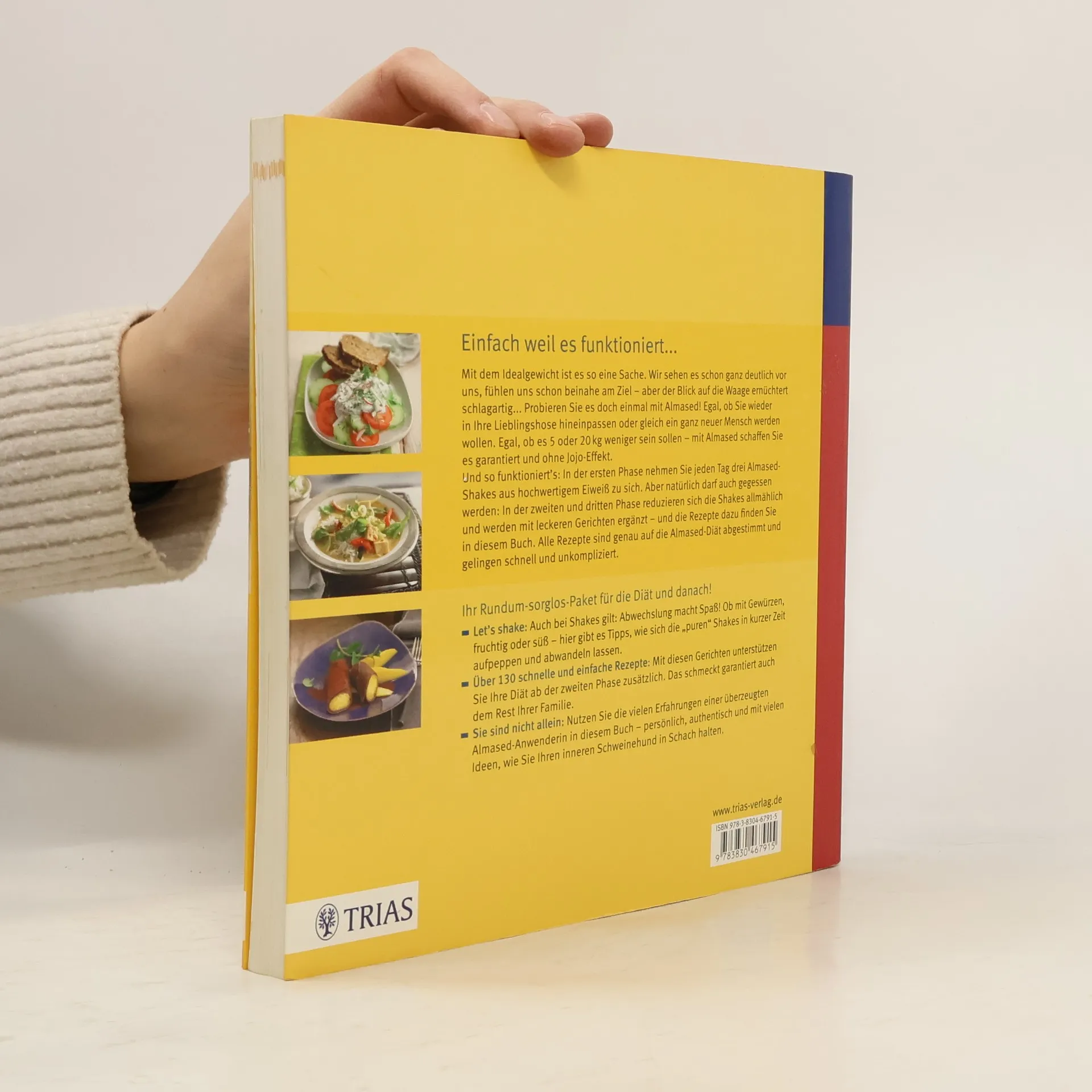 Mit dem Idealgewicht ist es oft eine Herausforderung. Wir fühlen uns dem Ziel nahe, doch der Blick auf die Waage kann ernüchternd sein. Probieren Sie Almased! Ob Sie in Ihre Lieblingshose passen oder einen neuen Look anstreben, mit Almased erreichen Sie Ihr Ziel ohne Jojo-Effekt. In der ersten Phase genießen Sie täglich drei hochwertige Eiweiß-Shakes. In den folgenden Phasen reduzieren sich die Shakes und werden durch köstliche Gerichte ergänzt, deren Rezepte in diesem Buch zu finden sind. Alle Rezepte sind auf die Almased-Diät abgestimmt und einfach zuzubereiten – Ihr Rundum-sorglos-Paket für die Diät und darüber hinaus! Abwechslung ist auch bei Shakes wichtig: Mit Tipps zur Verfeinerung der „puren“ Shakes können Sie schnell neue Geschmäcker entdecken. Über 130 schnelle und einfache Rezepte unterstützen Ihre Diät ab der zweiten Phase und sind auch für die Familie lecker. Nutzen Sie die Erfahrungen einer überzeugten Almased-Anwenderin in diesem Buch – persönlich, authentisch und mit vielen Ideen, um Ihren inneren Schweinehund zu überwinden. Andrea Stensitzky-Thielemans, Diätassistentin mit eigener Praxis und freiberufliche Ernährungsberaterin, teilt ihr Wissen und ihre Tipps.
