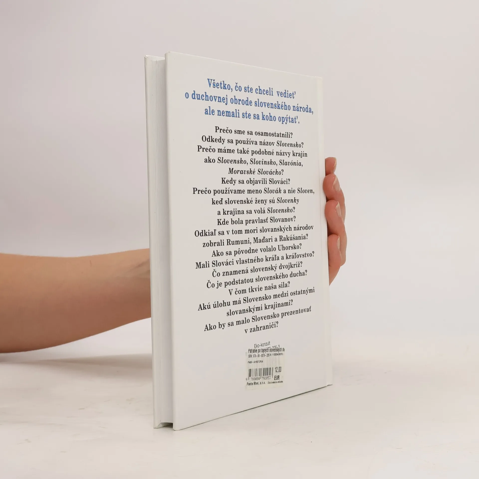 Prečo sme sa osamostatnili? Prečo je Slovensko chudobné? Prečo je Slovensko malé? Odkedy sa používa názov Slovensko? Prečo máme také podobné názvy krajín ako Slovensko, Slovinsko, Slavónia, Moravské Slovácko? Kedy sa objavili Slováci? Čo znamená názov Slovák? Prečo používame meno Slovák a nie Sloven, keď slovenské ženy sú Slovenky a krajina sa volá Slovensko? Prečo má každý zo slovanských národov svoje rozlišujúce meno, len Slovákom, Slovincom a Slavóncom zostalo všeobecné meno pre Slovanov? Kde bola pravlasť Slovanov? Odkiaľ sa v tom mori slovanských národov zobrali Rumuni, Maďari a Rakúšania? Ako sa volalo Uhorsko pred tým, ako sa nazvalo Uhorskom? Mali Slováci vlastné kráľovstvo? Mali Slováci vlastného kráľa? Kto ním bol? Nosil korunu? Ako vyzeral nastoľovací obrad? Čo znamená slovenský dvojkríž? Aké bolo naše pôvodné duchovno? Čo je podstatou slovenského ducha? Čo je typicky slovenské? V čom tkvie naša sila? Akú úlohu má Slovensko medzi ostatnými slovanskými krajinami? Ako by sa malo Slovensko prezentovať v zahraničí? Kam sa chce Slovensko uberať?