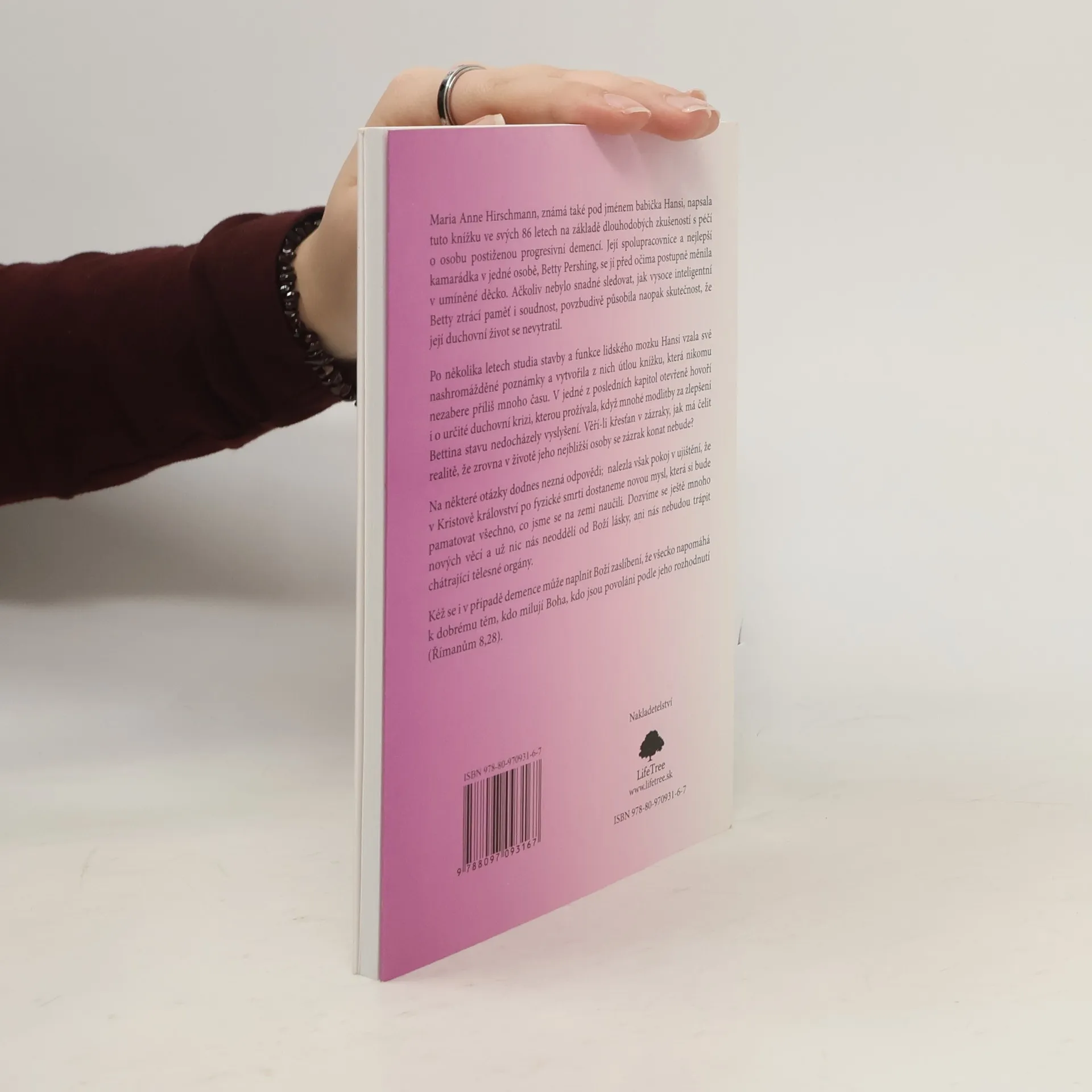 Autorka, známá také pod jménem babička Hansi, napsala tuto knížku ve svých 86 letech na základě dlouhodobých zkušeností s péčí o osobu postiženou progresivní demencí. Její spolupracovnice a nejlepší kamarádka v jedné osobě, Betty Pershing, se jí před očima postupně měnila v umíněné děcko. Ačkoliv nebylo snadné sledovat, jak vysoce inteligentní Betty ztrácí paměť i soudnost, povzbudivě působila naopak skutečnost, že její duchovní život se nevytratil. Po několika letech studia stavby a funkce lidského mozku Hansi vzala své nashromážděné poznámky a vytvořila z nich útlou knížku, která nikomu nezabere příliš mnoho času. V jedné z posledních kapitol otevřeně hovoří i o určité duchovní krizi, kterou prožívala, když mnohé modlitby za zlepšení Bettina stavu nedocházely vyslyšení. Na některé otázky dodnes nezná odpovědi; nalezla však pokoj v ujištění, že v Kristově království po fyzické smrti dostaneme novou mysl, která si bude pamatovat všechno, co jsme se na zemi naučili. Kéž se i v případě demence může naplnit Boží zaslíbení, že všecko napomáhá k dobrému těm, kdo milují Boha, kdo jsou povoláni podle jeho rozhodnutí
