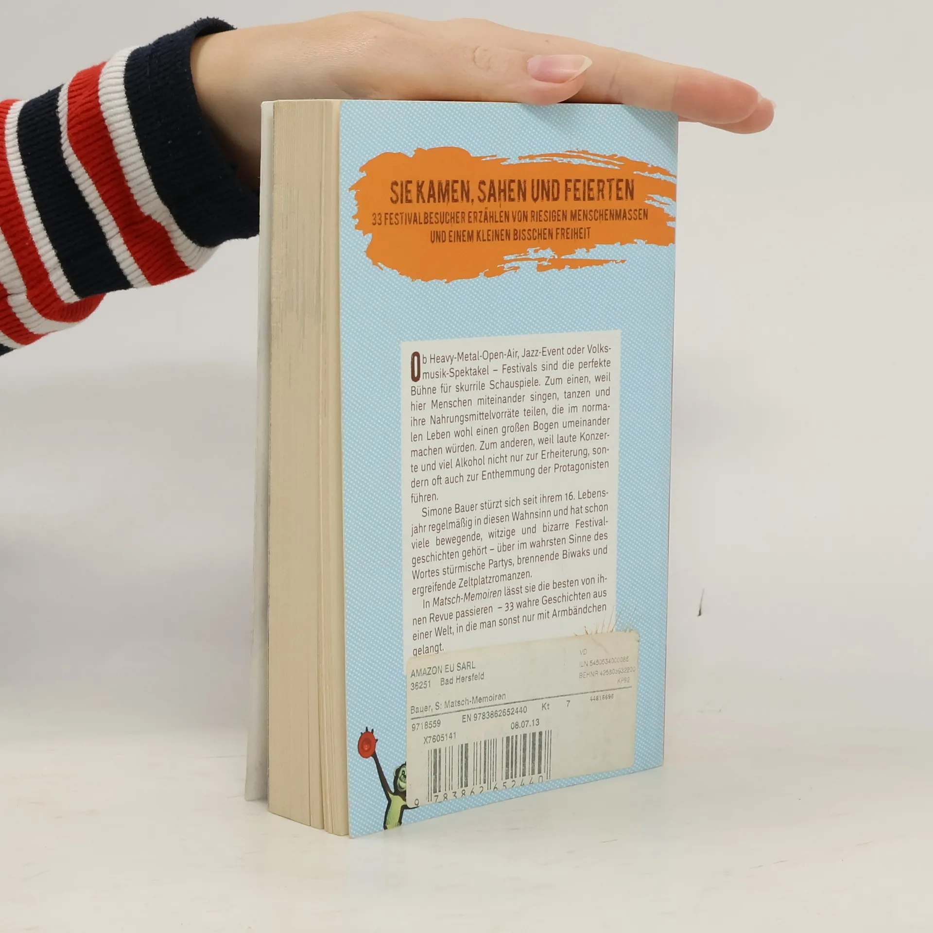 Simone Bauer, selbst begeisterte Freiluft-Feiernde, hat in den letzten Jahren unzählige Open-Airs besucht und ist dabei Leuten begegnet, die ihr schier unglaubliche Geschichten vom Zeltplatzleben und Tanzen im Moshpit erzählt haben. In Matsch-Memoiren hat sie die irrwitzigsten Berichte festgehalten und die sind so unterschiedlich wie die Festivals, auf denen sie sich zugetragen haben. So schwärmt Alexandra von einem unerwarteten Treffen mit ihrer Lieblingsband in New York, Cora berichtet, wie sie sich auf einer Beachparty am Weissenhäuser Strand unsterblich verliebte, und Josef erinnert sich an ein Volksmusikfest, das bleibende Narben hinterlassen hat. Gemeinsam sorgen die 33 Erzählungen für eine kurzweilige Lektüre und liefern den besten Beweis dafür, dass sich auf matschigen Wiesen und in der Schlange vorm Dixi-Klo alles ereignen kann: von verheerenden Katastrophen bis zu herzzerreißenden Liebesgeschichten.