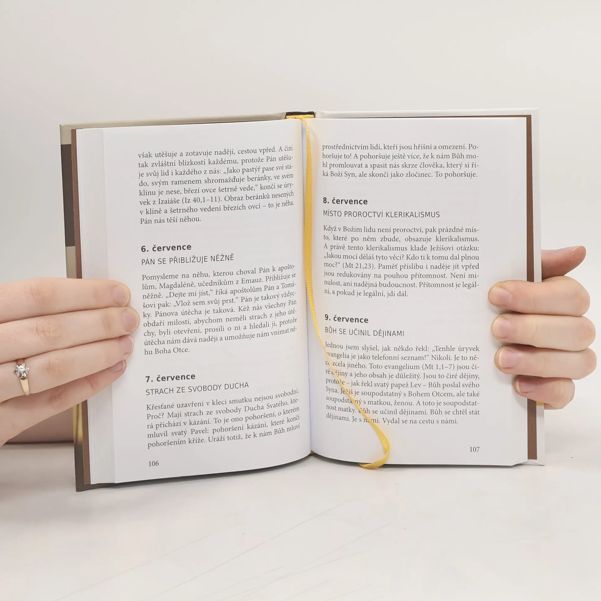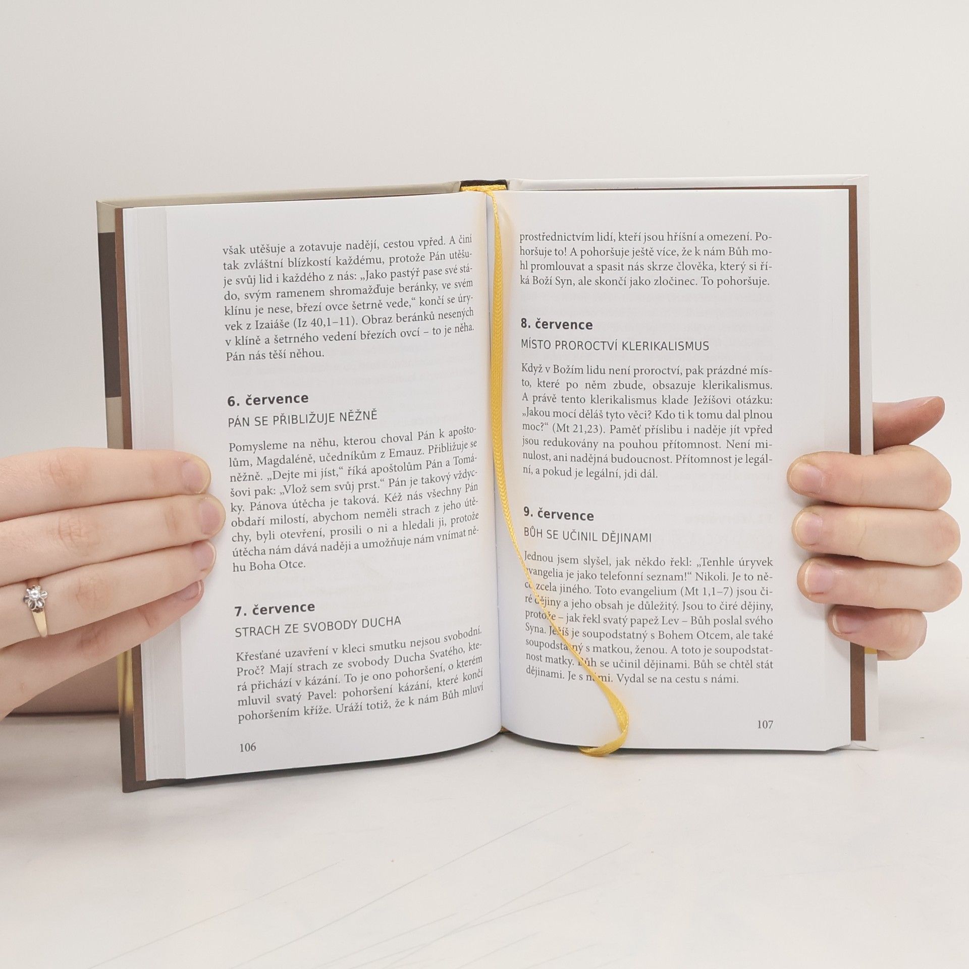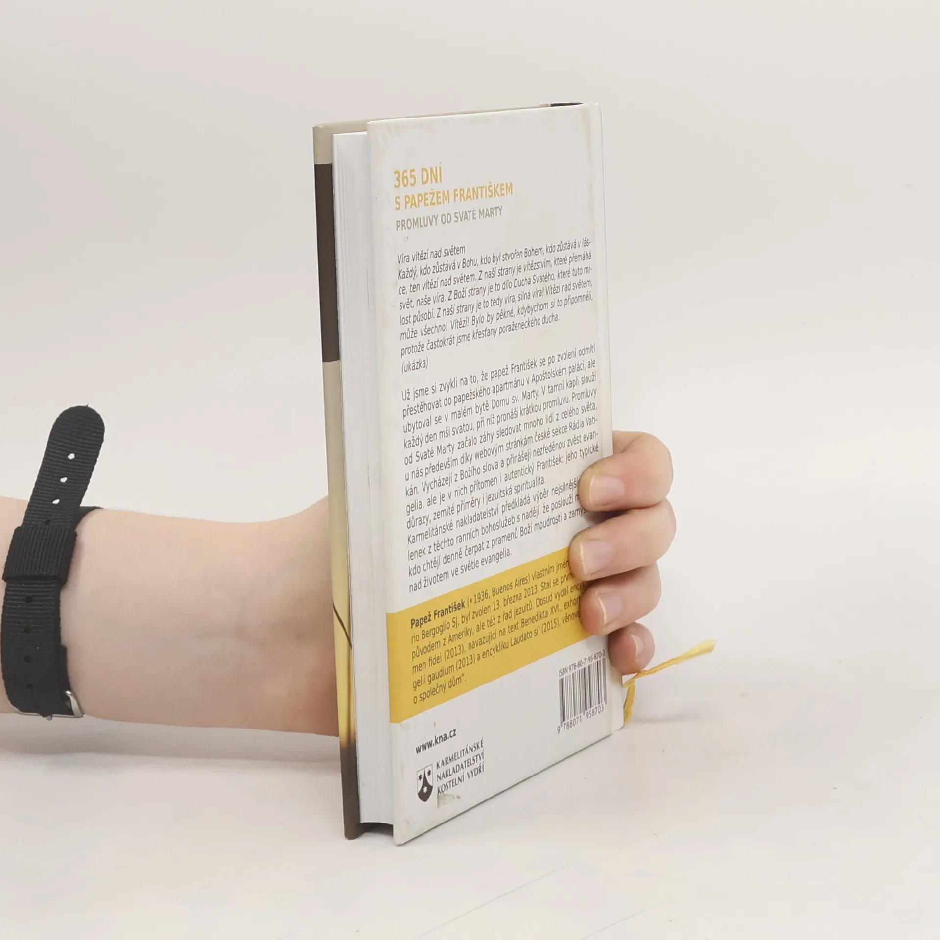 Promluvy od Svaté Marty. Už jsme si zvykli na to, že papež František se po zvolení odmítl přestěhovat do papežského apartmánu v Apoštolském paláci, ale ubytoval se v malém bytě Domu sv. Marty. V tamní kapli slouží každé ráno mši svatou, při níž pronáší krátkou promluvu. Promluvy od Svaté Marty začalo záhy sledovat mnoho lidí z celého světa, u nás především díky webovým stránkám české sekce rádia Vatikán. Vycházejí z Božího slova a přinášejí nezředěnou zvěst evangelia, ale je v nich přítomen i autentický František: jeho typické důrazy, zemité příměry i jezuitská spiritualita. Karmelitánské nakladatelství předkládá výběr nejsilnějších myšlenek z těchto ranních bohoslužeb, s nadějí, že poslouží mnohým, kdo chtějí denně čerpat z pramenů Boží moudrosti a zamýšlet se nad životem ve světle evangelia.