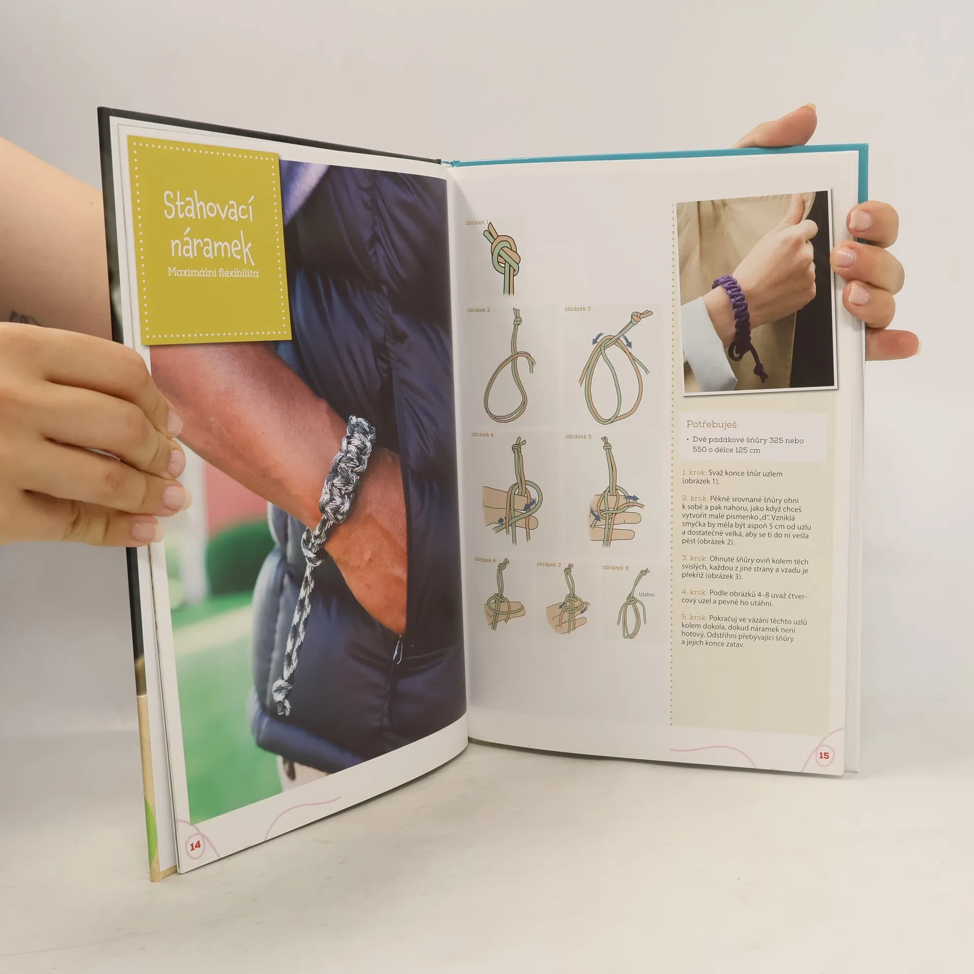 Pletení a vytváření z padákové šňůry je snadné a baví se jím děti, mládež i dospělí po celém světě. Snadno z ní vyrobíte nespočetné variace vkusných náramků, náhrdelníků i jiných šperků, pásků, klíčenek i dalších módních doplňků, obojky a vodítka pro vaše zvířecí miláčky, pouzdra i obuv. Díky této knize se srozumitelnými návody a praktickými radami brzy zazáříte s moderními doplňky na doma, na ven, do školy i na sportování. Výrobky z padákové šňůry oplývají celou řadou kladů a výhod: 1) Jsou krásně barevné. Šňůra se dá koupit v nepřeberném množství odstínů a vzorů. 2) Jsou trvanlivé. Odolná a lehká padáková šňůra byla původně vyvinuta k zavěšení padáků během druhé světové války a použili ji i kosmonauté při opravě Hubblova vesmírného teleskopu. 3) Zaujmete s nimi úplně každého. Ať už se chcete jen předvést nebo někomu udělat radost dárkem, s výrobky z padákové šňůry vyhrajete. Nabízí totiž nekonečné možnosti využití.