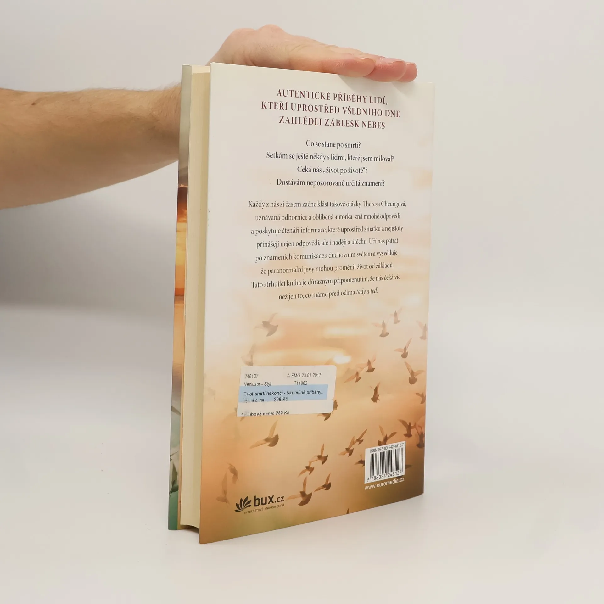 Ve své nové knize Theresa Cheungová, úspěšná autorka díla Spatříš svoje anděly, předkládá čtenářům strhující příběhy lidí, kteří uprostřed všedního dne zahlédli záblesk nebes. Dotyční navázali kontakt s „oním světem“, ocitli se na prahu smrti nebo zažili jiný úkaz, přesvědčivě nasvědčující existenci posmrtného života. Pomocí těchto přímých svědectví autorka zodpovídá zásadní otázky, jež si v určité životní fázi klade každý z nás: Co se stane, až umřu? Setkám se znovu se svými milovanými? Existuje posmrtný život?