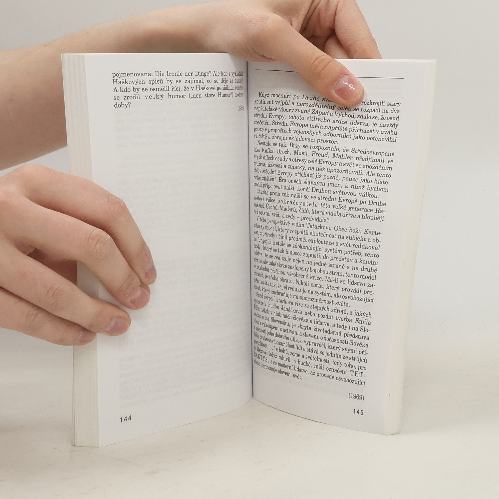 Jedná se o knihu esejů rozebírajících filosofická i literární témata. K. Kosík se zamýšlí nad moderní dobou a komentuje Kafkovo přesvědčení, podle kterého je moderní doba nepřátelská k tragičnu a na jeho místo dosazuje groteskno; konstatuje, že žijeme v době „postheroické“. Toto téma demonstruje na rozboru děl Kafky a Haška, respektive postav Josefa K. a Josefa Švejka. Zabývá se „naší nynější krizí“: tj. hovoří o krizi politického systému (o masovosti, politické manipulaci…), nedostatku politických osobností, krizi tříd a společnosti, národa či moci. Dále se věnuje tématu Střední Evropy, respektive „české otázce“; hovoří zde mimo jiné o německé a ruské interpretaci Střední Evropy. Zabývá se podobami moderní české politiky a českou politiku charakterizuje jako důvěřivou a propadající iluzím, navzdory vnějšímu pláštíku realismu; komentuje i české postoje ke Slovákům (včetně Palackého a Masaryka). Zabývá se rovněž vztahem jednotlivce a dějin. Tématem je mu i pojetí demokratismu u K. Havlíčka. Kniha získala cenu Nadace Český literární fond za nejlepší esej roku 1994.