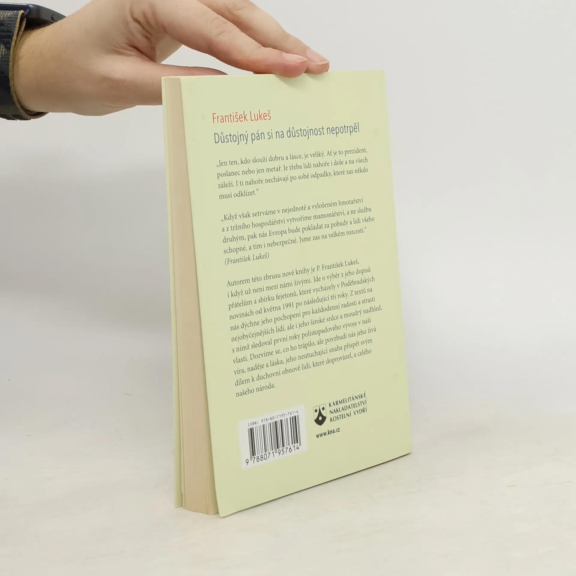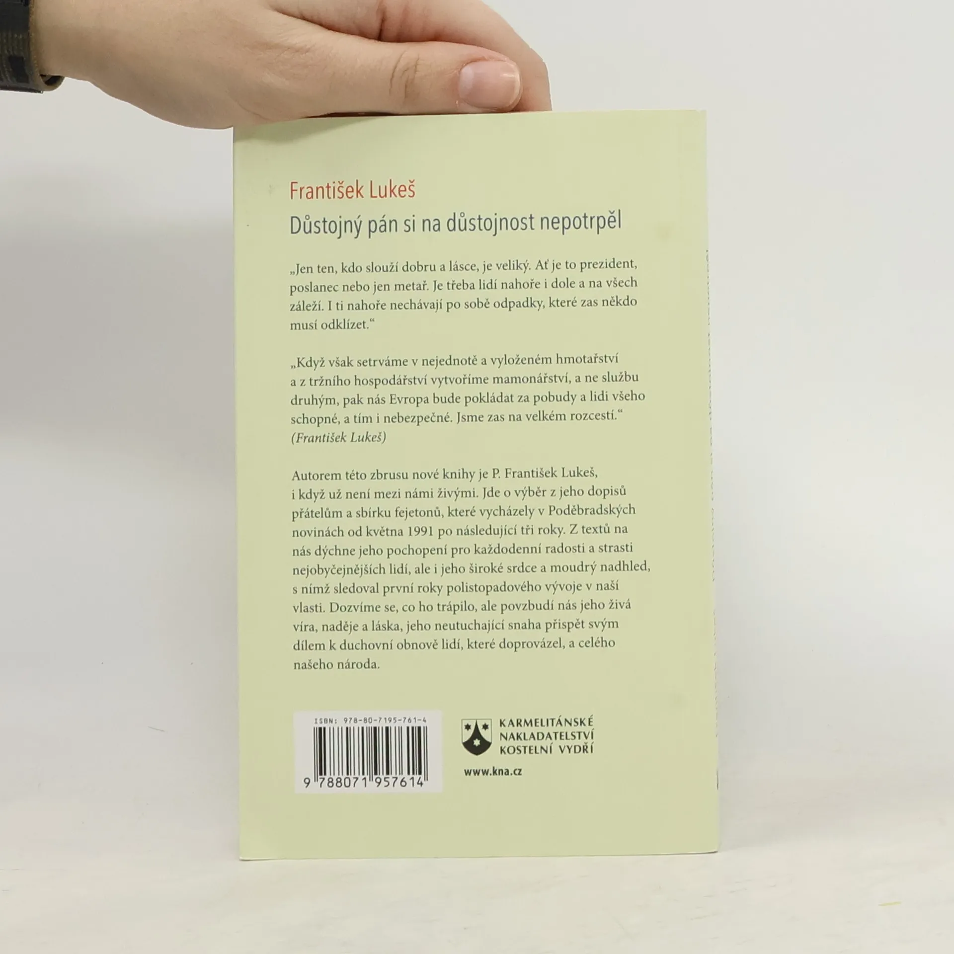 Autorem této zbrusu nové knihy je P. František Lukeš, i když už není mezi námi živými. Jde o výběr z jeho dopisů přátelům a sbírku fejetonů, které vycházely v Poděbradských novinách od května 1991 po následující tři roky. Z textů na nás dýchne jeho pochopení pro každodenní radosti a strasti nejobyčejnějších lidí, ale i jeho široké srdce a moudrý nadhled, s nímž sledoval první roky polistopadového vývoje v naší vlasti. Dozvíme se, co ho trápilo, ale povzbudí nás jeho živá víra, naděje a láska, jeho neutuchající snaha přispět svým dílem k duchovní obnově lidí, které doprovázel, a celého našeho národa.