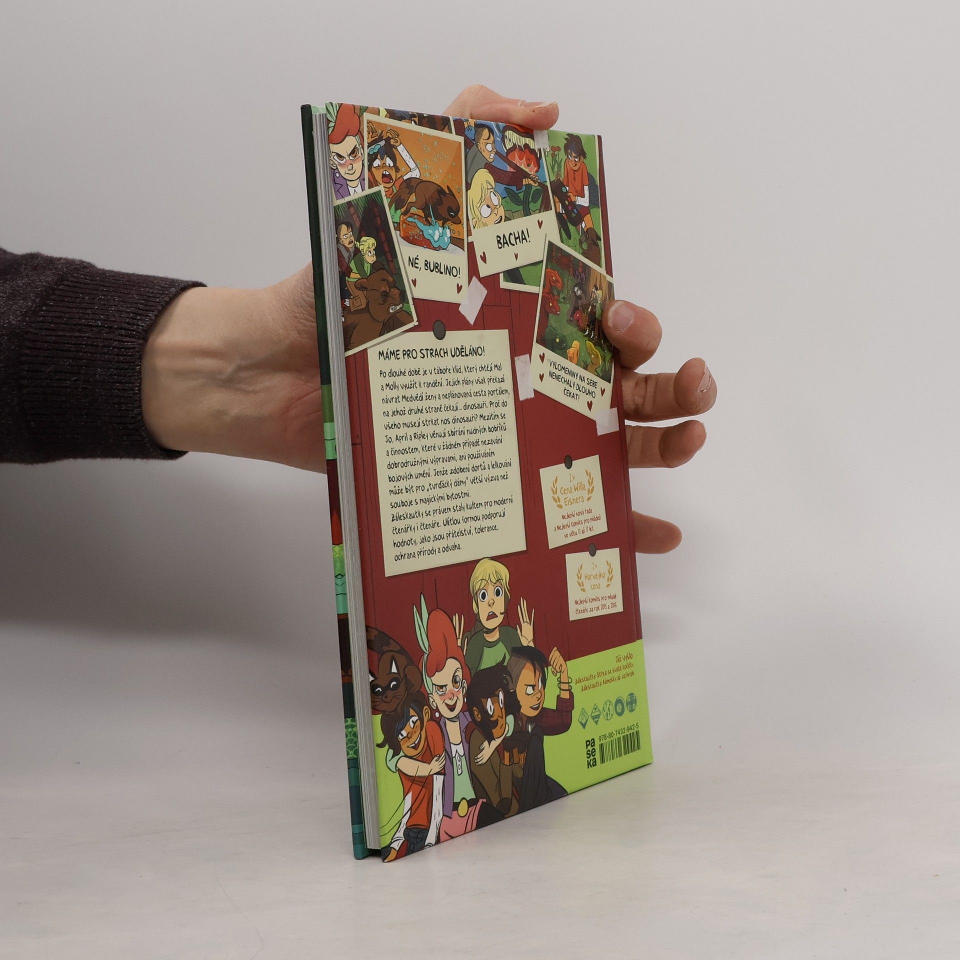 Po dlouhé době je v táboře klid, který chtějí Mal a Molly využít k randění. Jejich plány ale překazí návrat medvědí ženy a neplánovaná cesta portálem, na jehož druhé straně čekají… dinosauři. Proč do všeho musejí strkat nos dinosauři? Mezitím se Jo, April a Ripley věnují sbírání nudných bobříků a činnostem, které v žádném případě nezavání dobrodružnými výpravami ani používáním bojových umění. Jenže zdobení dortů a vystřihování může být pro „tvrďácký dámy“ daleko větší výzva než souboje s magickými bytostmi a tříokými liškami. Záleskautky se právem staly kultem pro moderní čtenářky i čtenáře. Ulítlou formou podporují hodnoty, jako jsou přátelství, tolerance, ochrana přírody a odvaha.