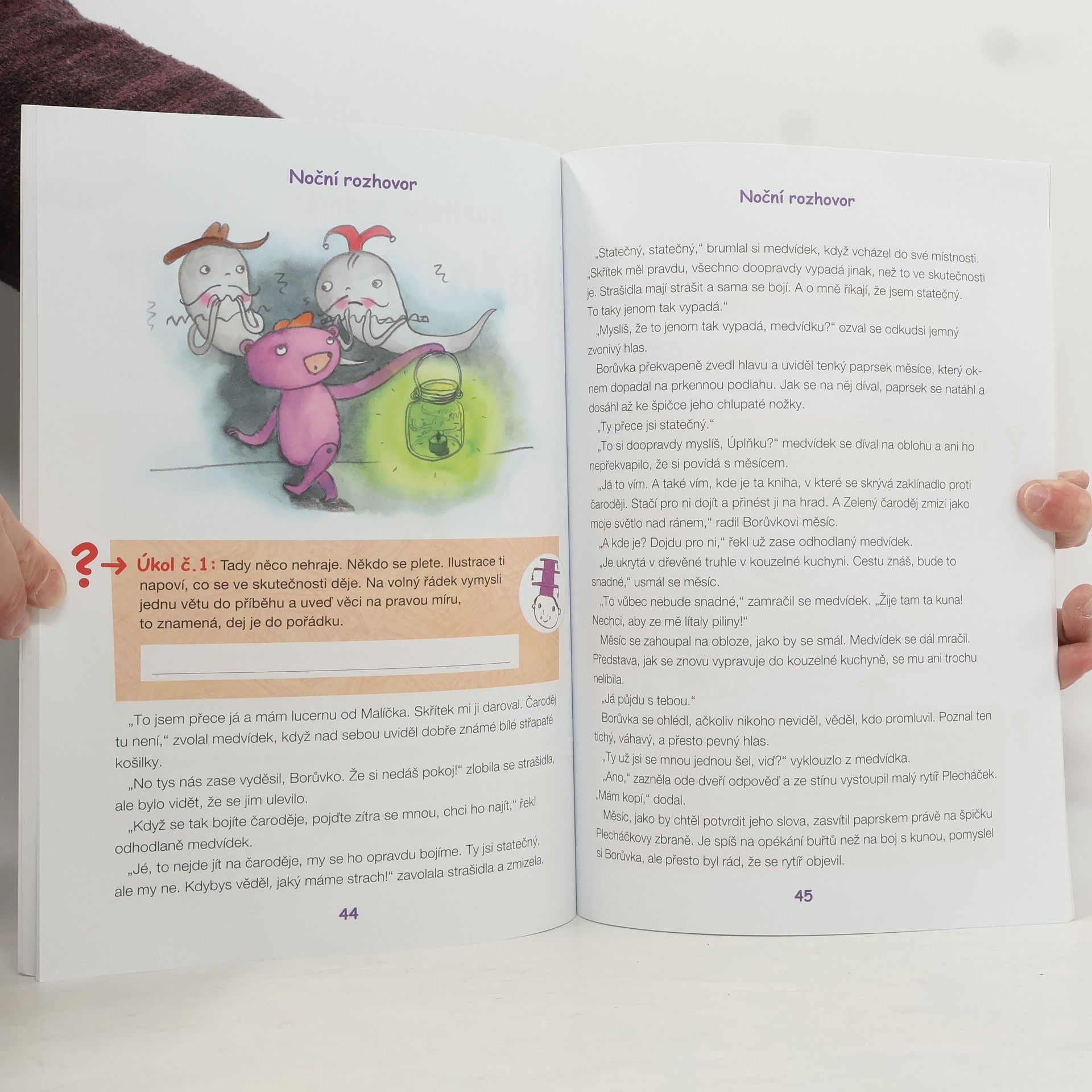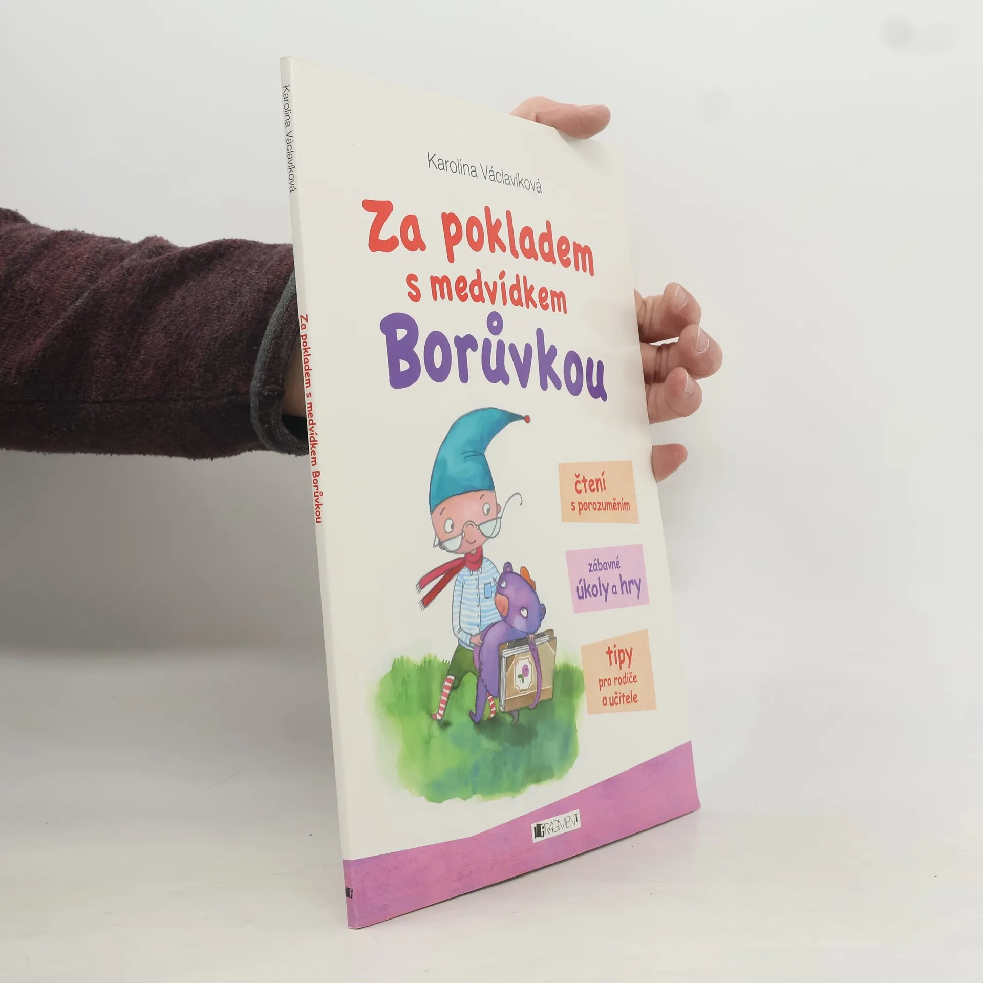 Plyšový medvídek Borůvka se ztratil. Teď leží v opuštěném hradu a neví, co s ním bude. Když ale v noci přijde Bílá paní a medvídka svými kouzly oživí, začnou se dít věci… Jednoduchý příběh pro malé čtenáře je připravený tak, aby mu děti dobře porozuměly. Vlastní nácvik čtení je rozšířený o zábavné úkoly, které slouží k rozvoji klíčových čtenářských kompetencí. Knížka je doplněna podrobnou metodikou, která je určena jak rodičům, tak učitelům.